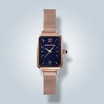 The Lustre Gem embodies modern allure with its slender rectangular case and refined mesh strap that flows seamlessly across the wrist. Its gemstone-inspired starry dial glimmers with subtle brilliance, offering a quiet touch of mystery and charm. Each detail speaks to contemporary elegance, balancing simplicity with an irresistible glow.