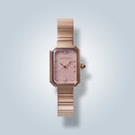 Encased in a sleek rectangular frame with a polished bracelet, the design balances celestial elegance with modern sophistication. Created for the woman who walks with quiet confidence and luminous grace, the Stellar Gem transforms timekeeping into a cosmic statement of style.