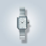 Encased in a sleek rectangular frame with a polished bracelet, the design balances celestial elegance with modern sophistication. Created for the woman who walks with quiet confidence and luminous grace, the Stellar Gem transforms timekeeping into a cosmic statement of style.