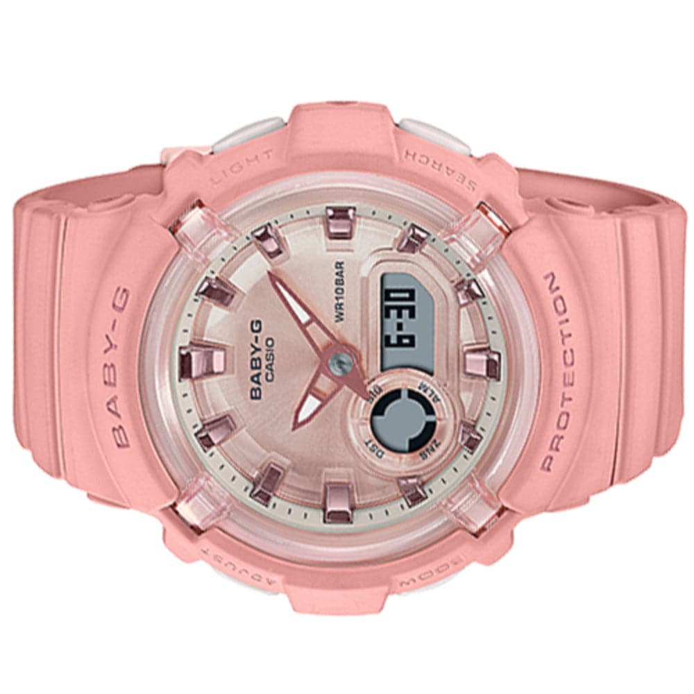 The black model has a cool look, while the coral pink model is BABY-G cute.