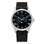 The Aries Gold G 7019 S-BK men's watch, part of the Heritage collection, is a timeless legacy crafted for discerning gentlemen. Stainless steel gleams in polished and brushed finishes, while oversized pushers and Roman numerals add a touch of classic strength and elegance. A Japanese multi-function movement ensures unwavering accuracy, protected by scratch-resistant sapphire crystal. The triple register chronograph keeps you in sync with every moment, while the hand-stitched leather strap adds timeless sophistication. With 5 bar water resistance, the G-WG is ready for any adventure, etching its own story of your life's journey with every tick and tock. Own a piece of watchmaking history, own the Aries Gold G 7019 S-BK.