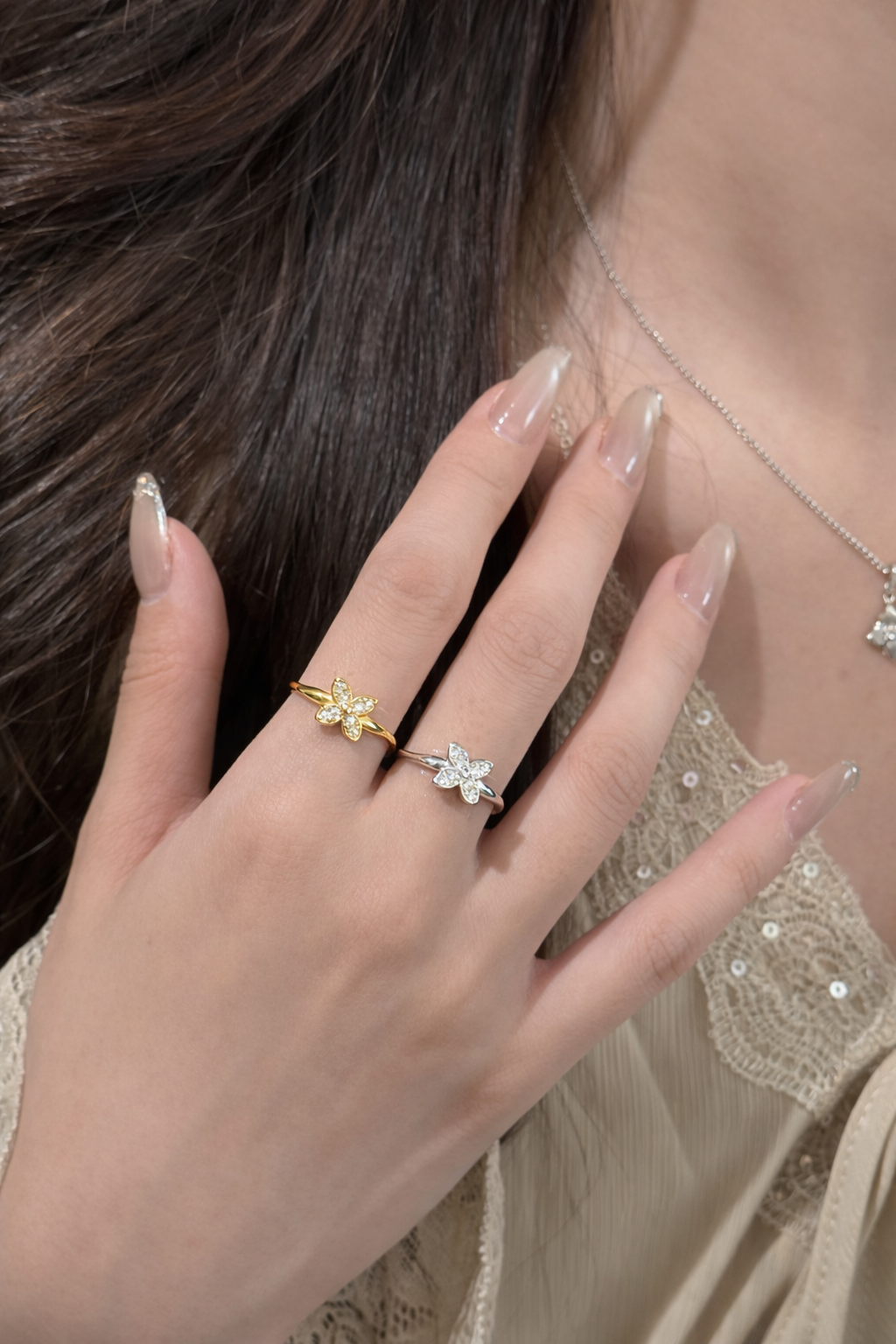 • Sparkling stone-set petals for refined brilliance