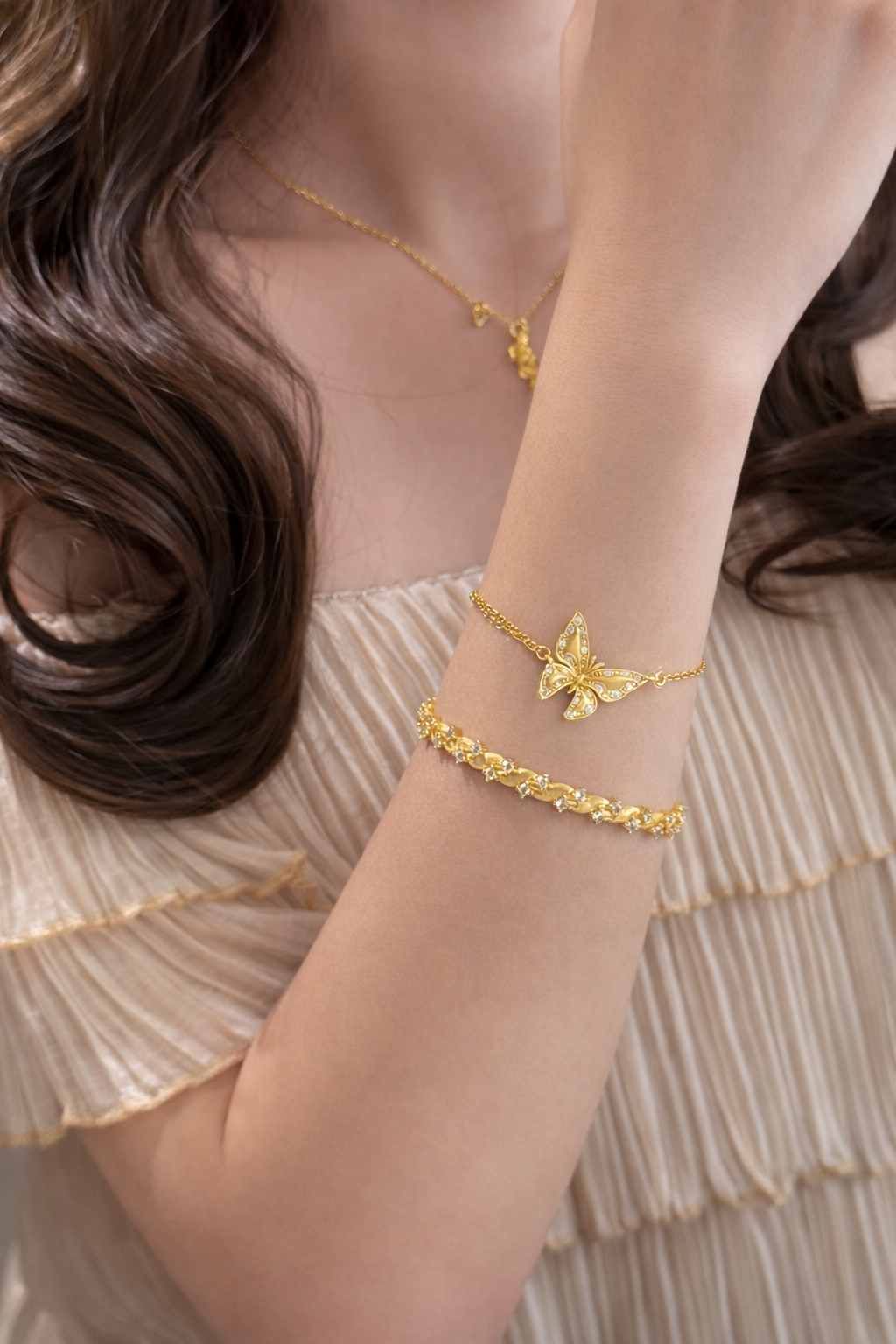 Available in radiant gold and sleek silver, the Butterfly Lumière Bracelet is a timeless piece that carries meaning as beautifully as it shines.
