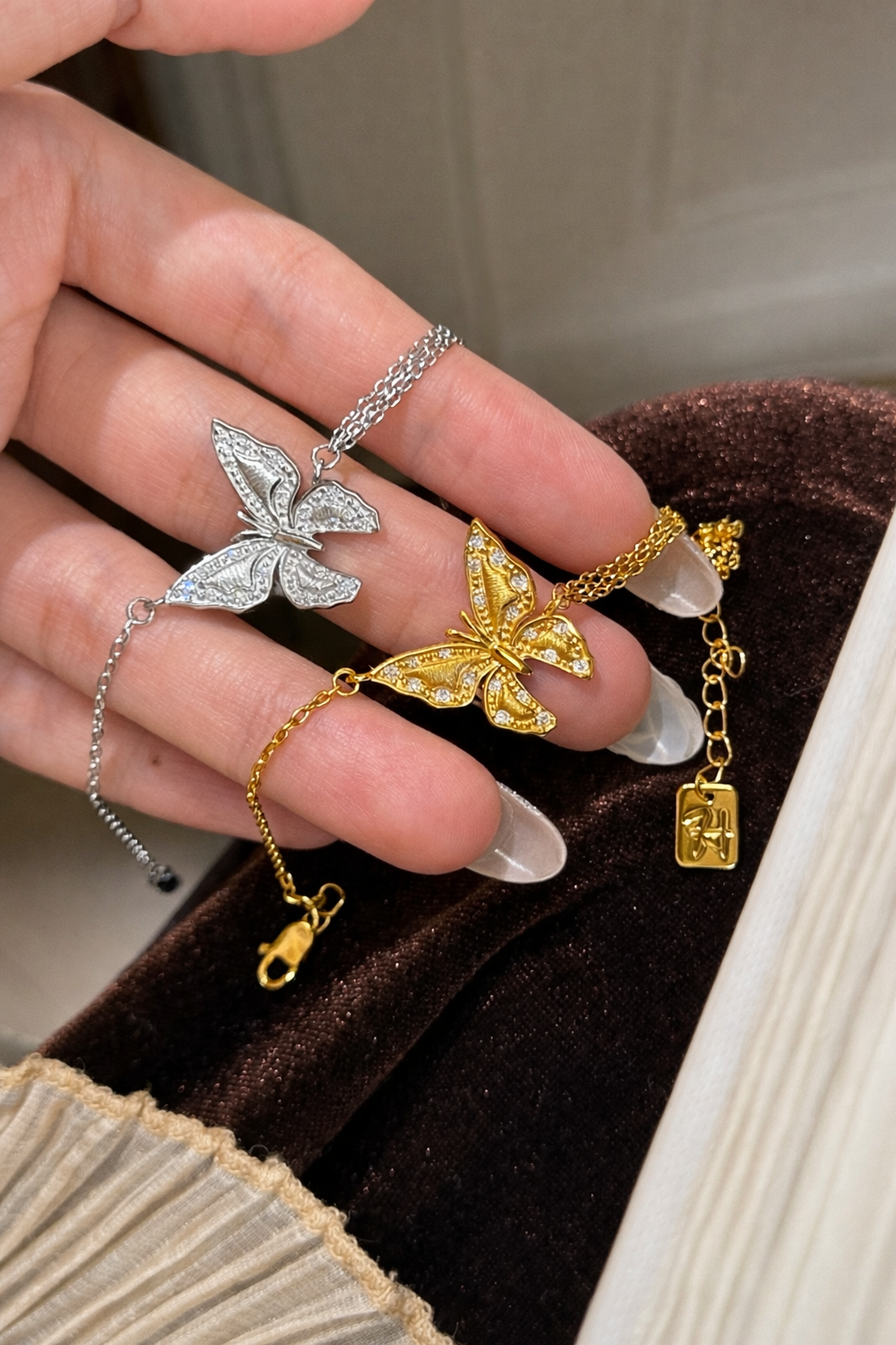 Designed to feel both graceful and empowering, this piece represents growth, renewal, and the courage to evolve. The fine chain adds a touch of refinement, while the luminous butterfly centerpiece makes a subtle yet captivating statement.