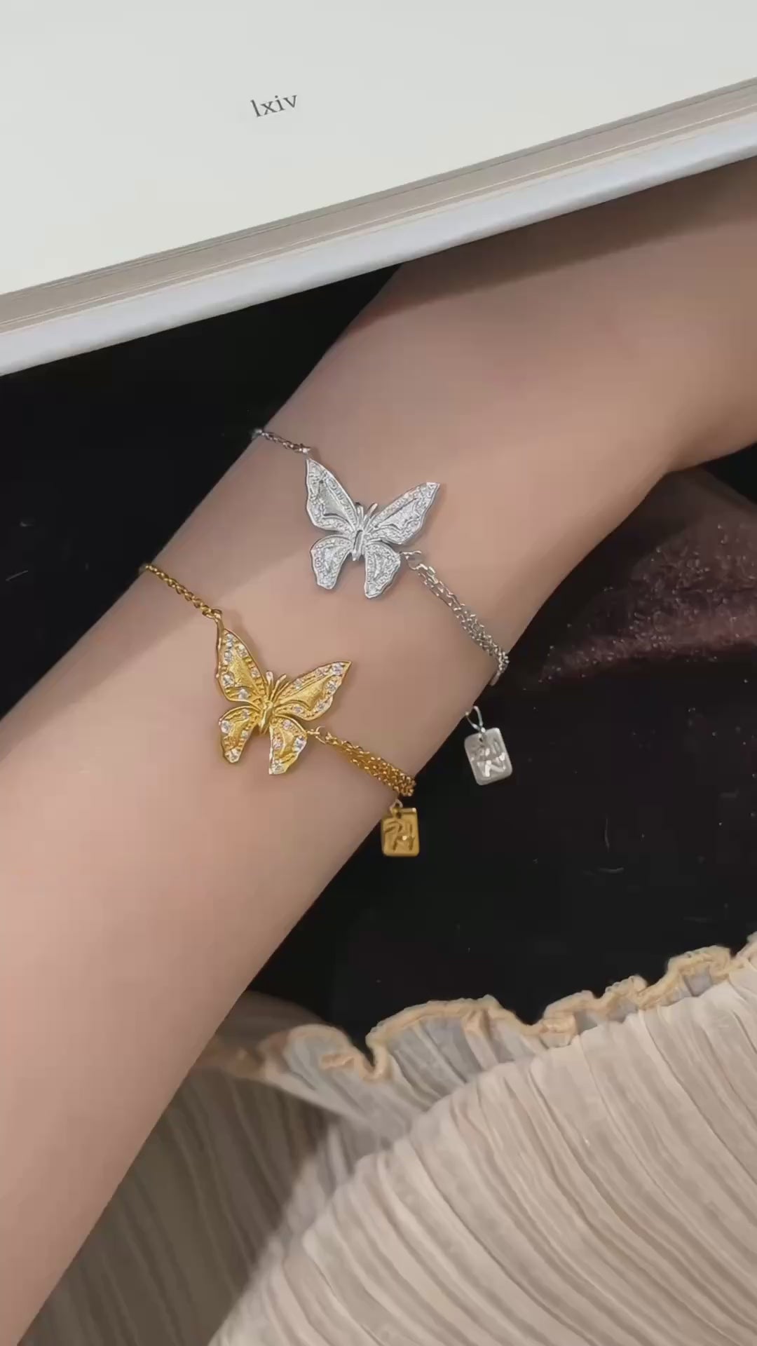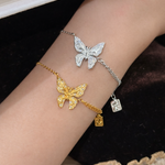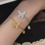 The Butterfly Lumière Bracelet features an intricately sculpted butterfly pendant, delicately accented with pavé crystals that shimmer with every movement. Its openwork wings create a light, airy silhouette, capturing elegance in motion.