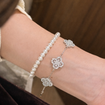 The Crystal Clover Bracelet features a refined chain design adorned with pavé crystal clover motifs, each petal delicately sculpted to reflect light with luminous brilliance. Inspired by the four-leaf clover, this piece represents good fortune, harmony, and enduring beauty.