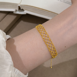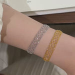 Available in radiant gold and sleek silver, the Ethereal Mesh Bracelet is a timeless expression of modern femininity.