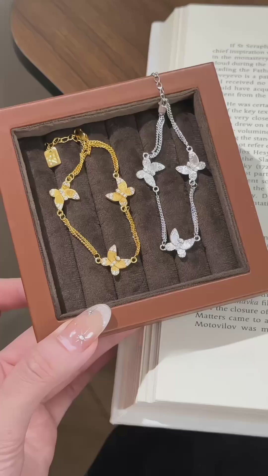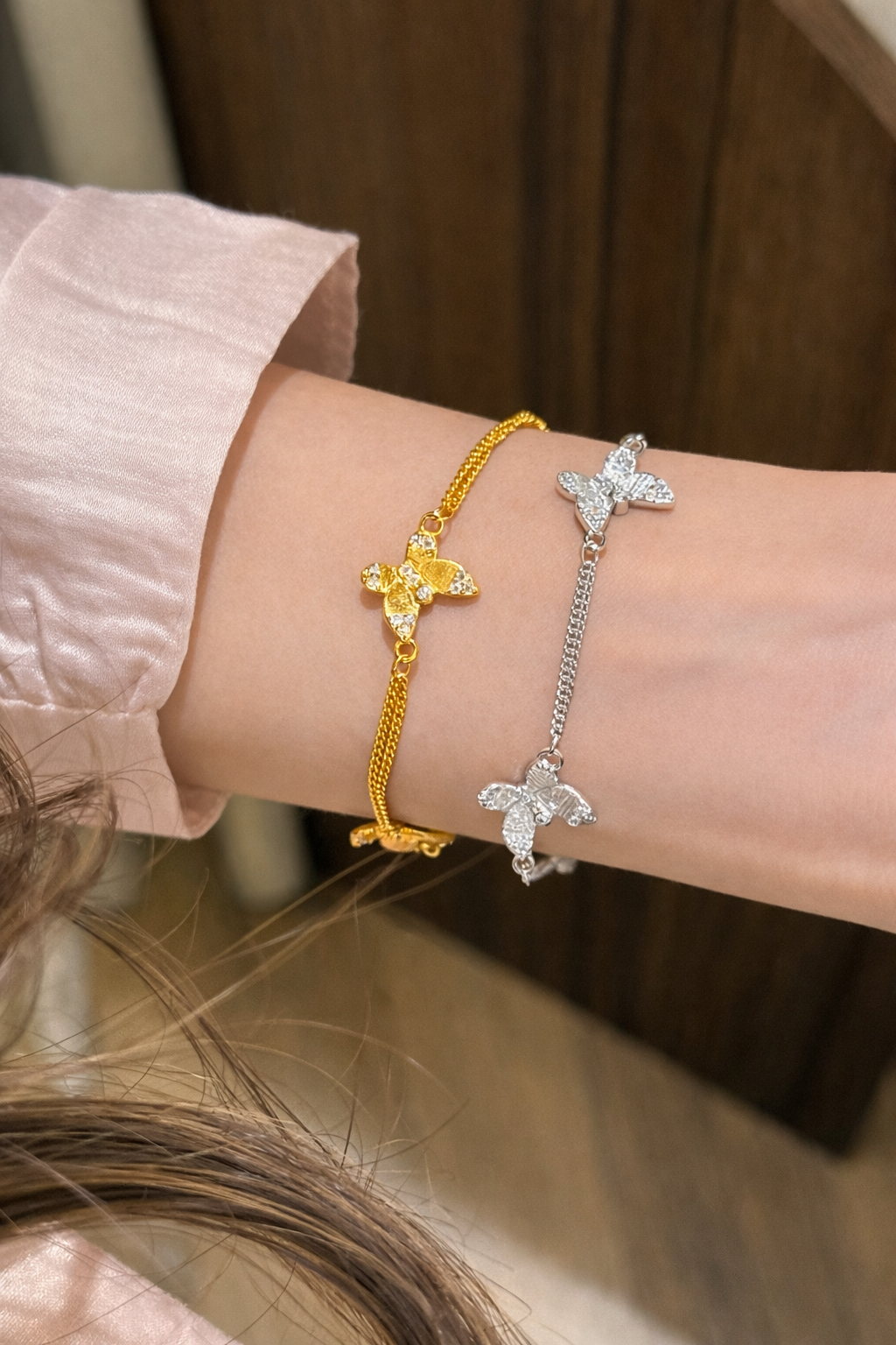 Wear it solo for delicate sophistication, or stack both gold and silver versions together for a chic, layered contrast. Pair with soft-toned outfits or minimalist jewelry to let the butterflies shimmer.