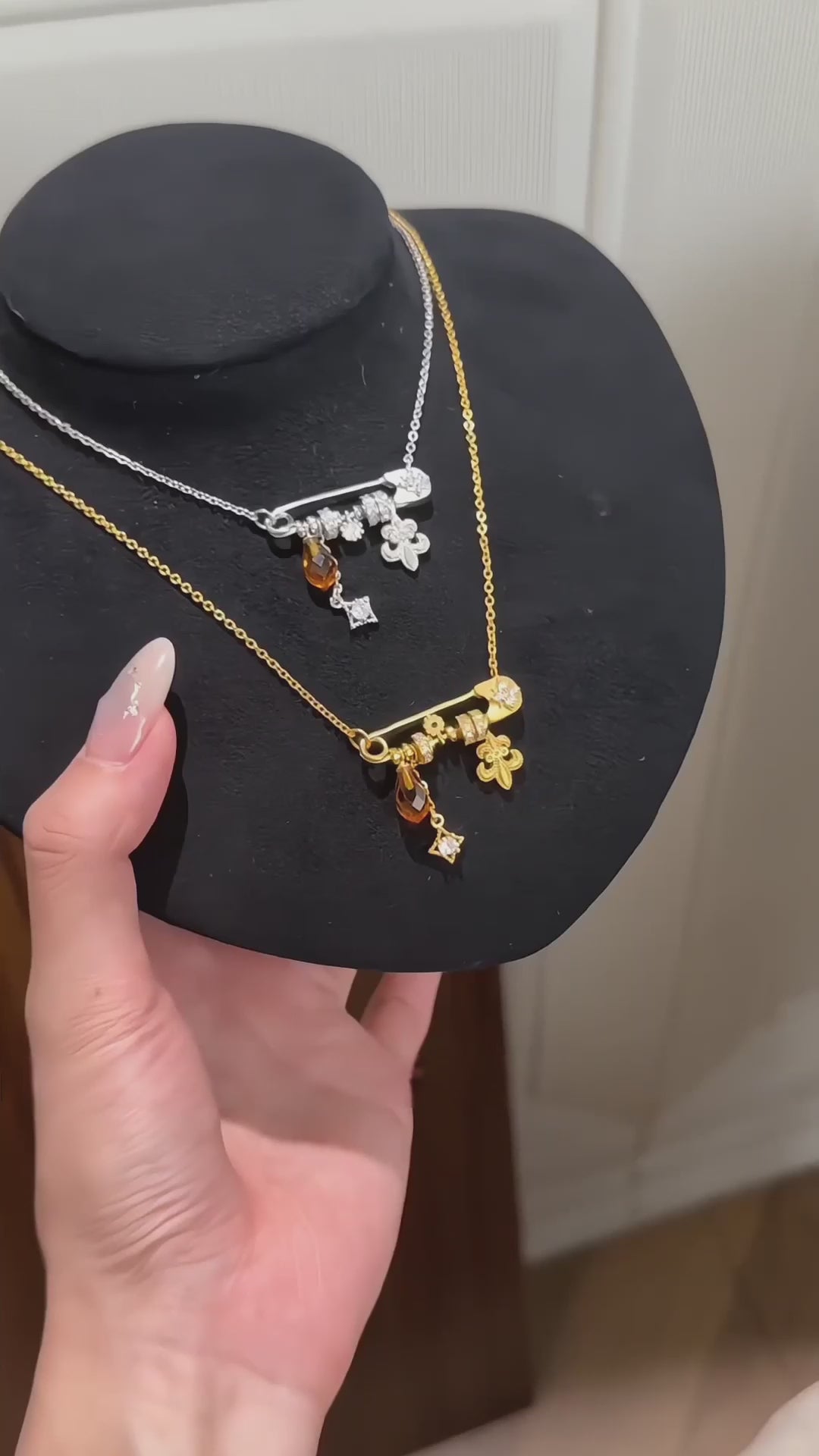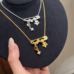 Inspired by the classic safety pin, a symbol of protection and holding things together, this piece transforms an everyday object into refined luxury. Each delicate charm represents something treasured: luck, love, strength, and the quiet confidence that follows you wherever you go.