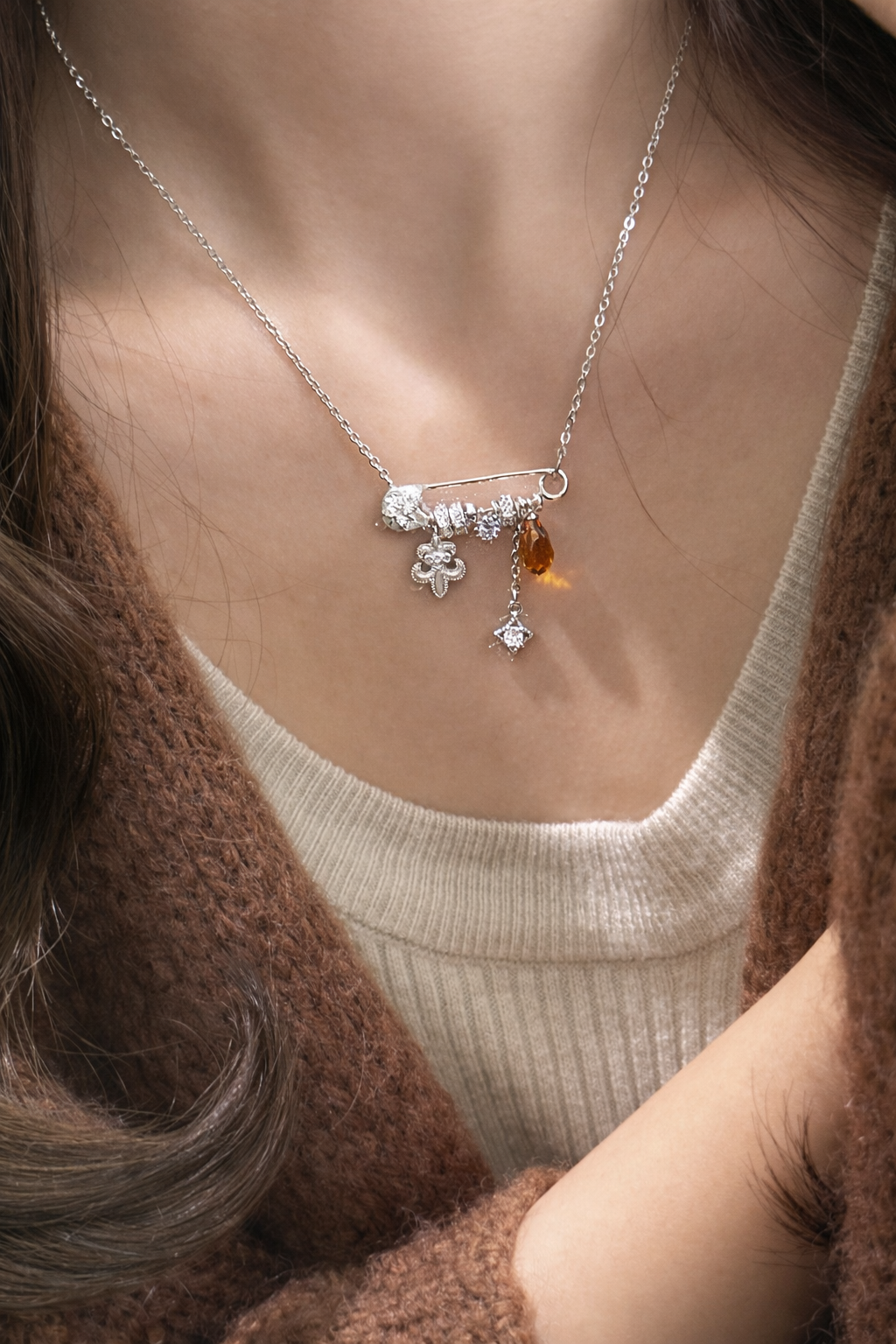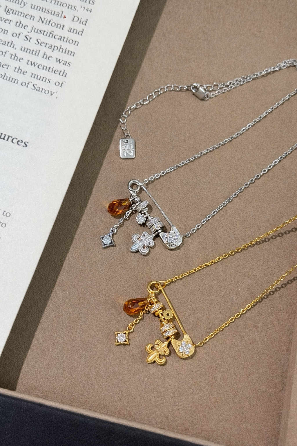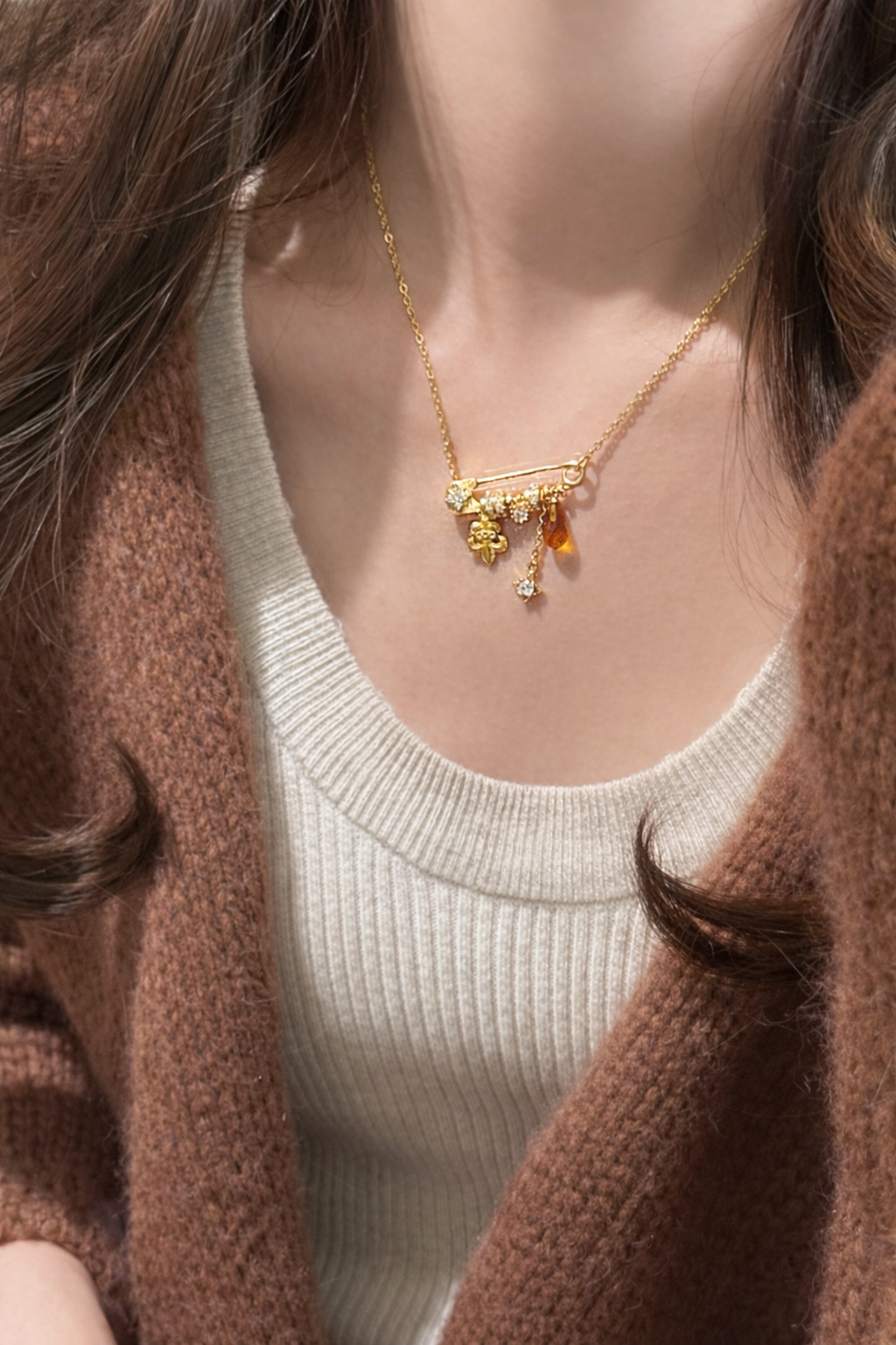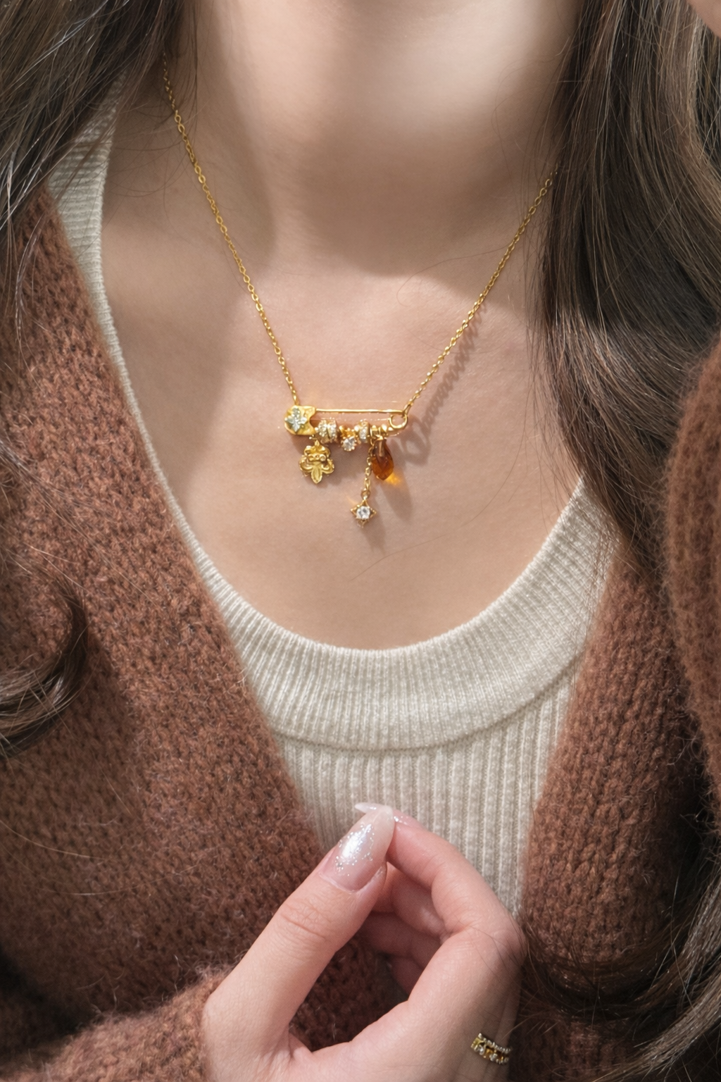 The Fortune Keepsake Safety Pin Charm Necklace is designed as a modern talisman — a beautiful reminder that the smallest details often carry the deepest meaning.