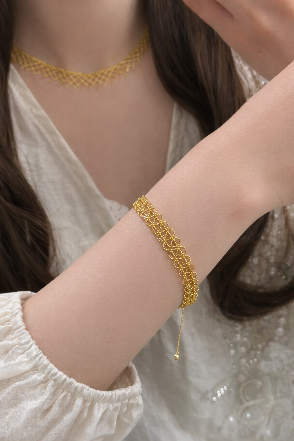 The Infinity Lace Bracelet features an intricate openwork design inspired by flowing infinity loops, symbolizing continuity, harmony, and timeless beauty. Each interwoven curve creates a lace-like texture that feels light on the wrist yet visually captivating.