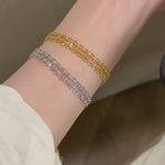 Crafted to shimmer with subtle brilliance, this bracelet reflects light from every angle while maintaining an airy, feminine profile. Its adjustable sliding clasp ensures a perfect fit, making it effortless to wear from day to night.