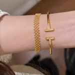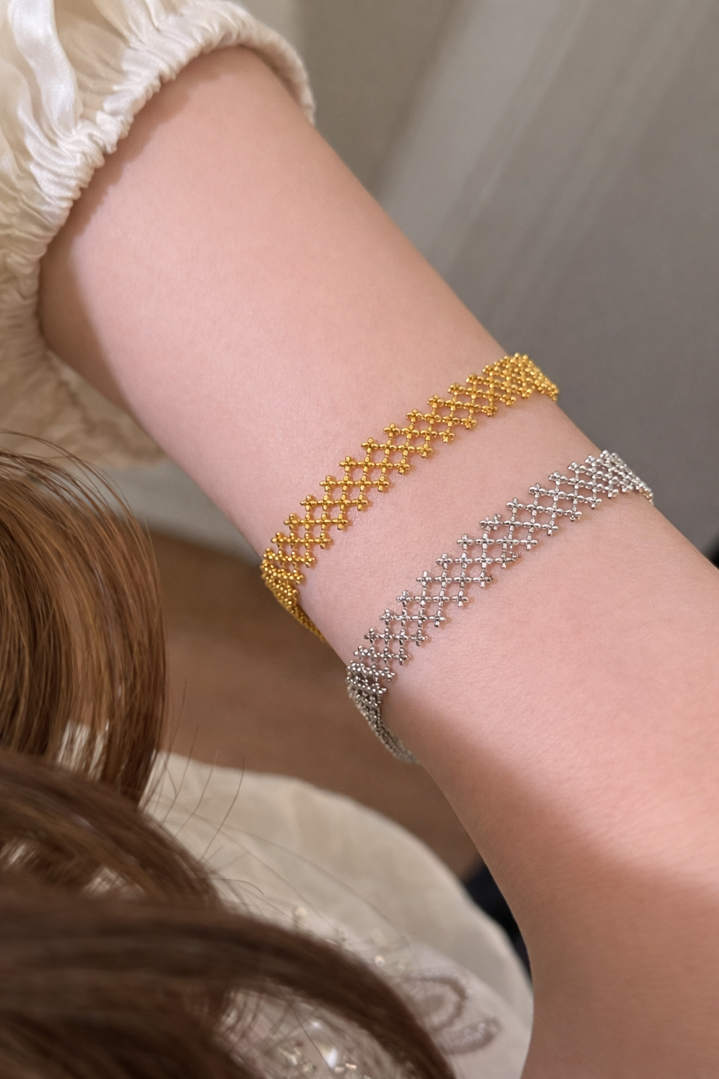 Available in radiant gold and sleek silver, the Lattice Luxe Bracelet is a statement of quiet luxury and refined individuality.