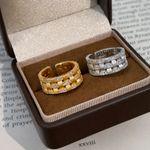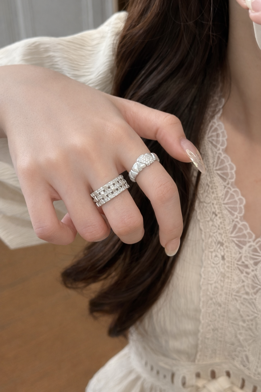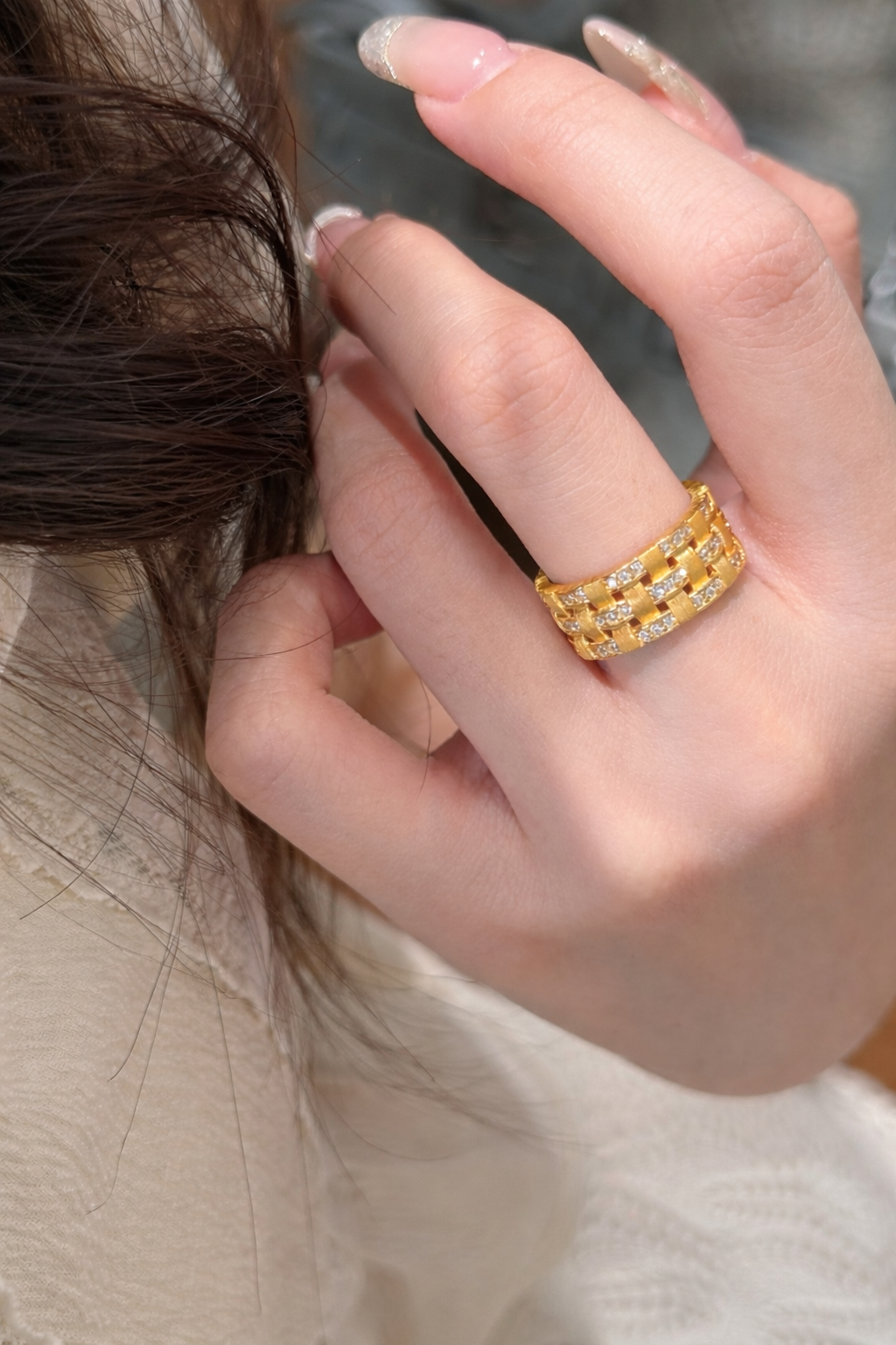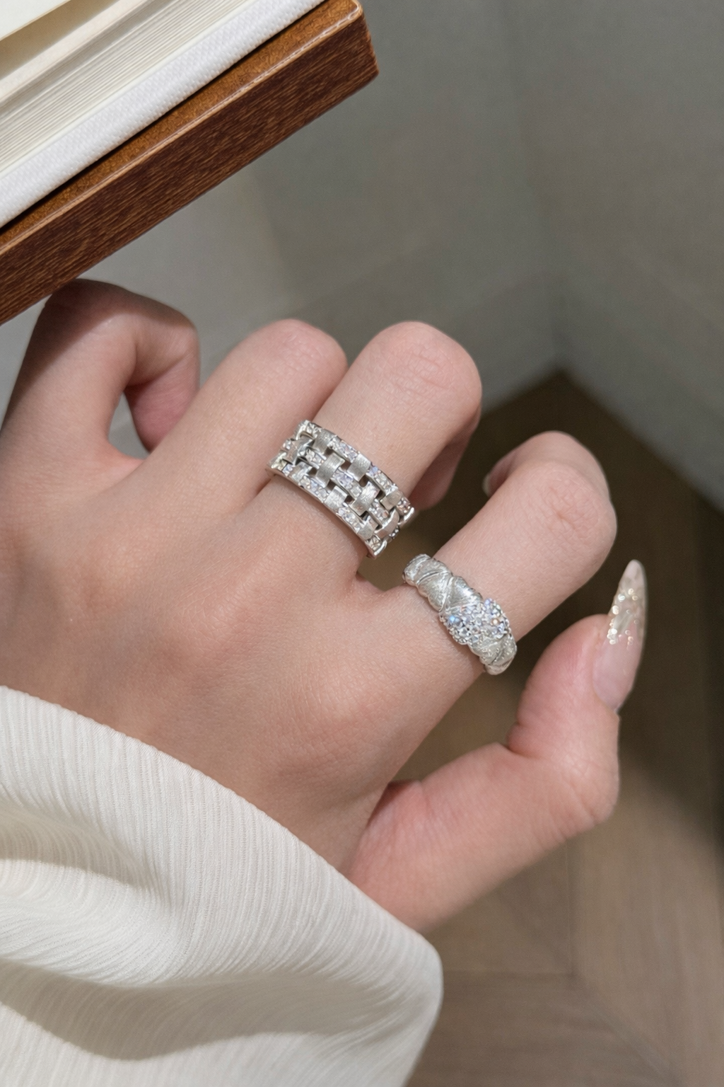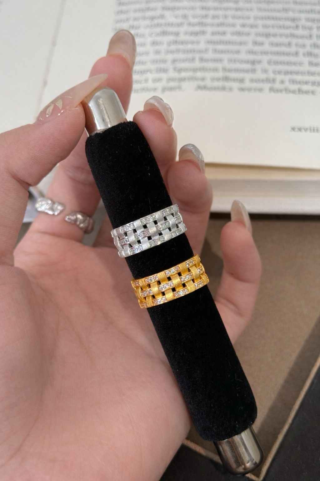 The Lattice Radiance Ring is inspired by architectural balance and refined craftsmanship. Featuring an interwoven lattice design accented with precision-set crystals, this ring represents connection, resilience, and enduring elegance.
