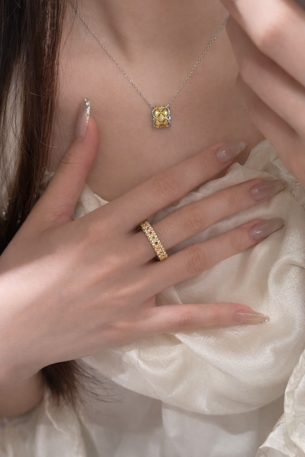 The Prism Garden Eternity Ring is for those who live fully, feel deeply, and believe that beauty is found in variety — not simplicity alone.
