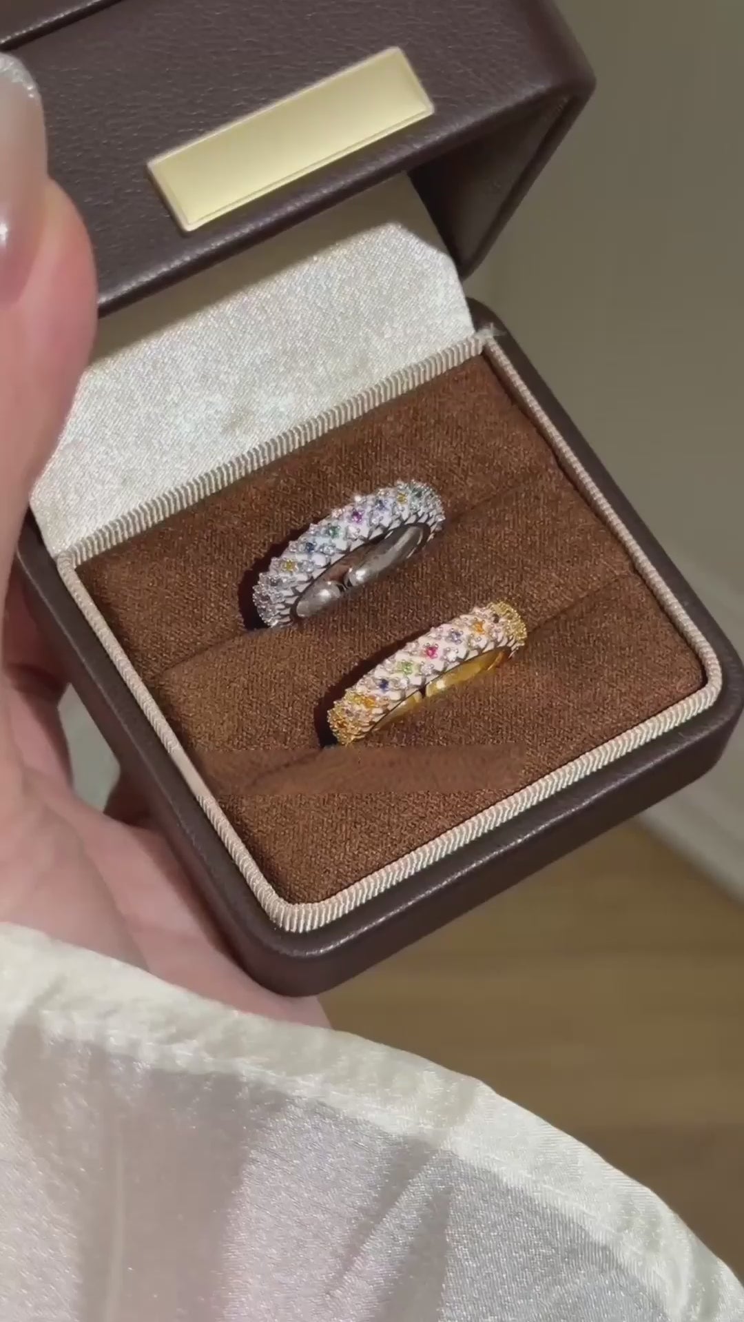 Each stone is deliberately placed, forming a continuous band of multi-coloured brilliance that symbolises abundance, joy, creativity, and wholeness.