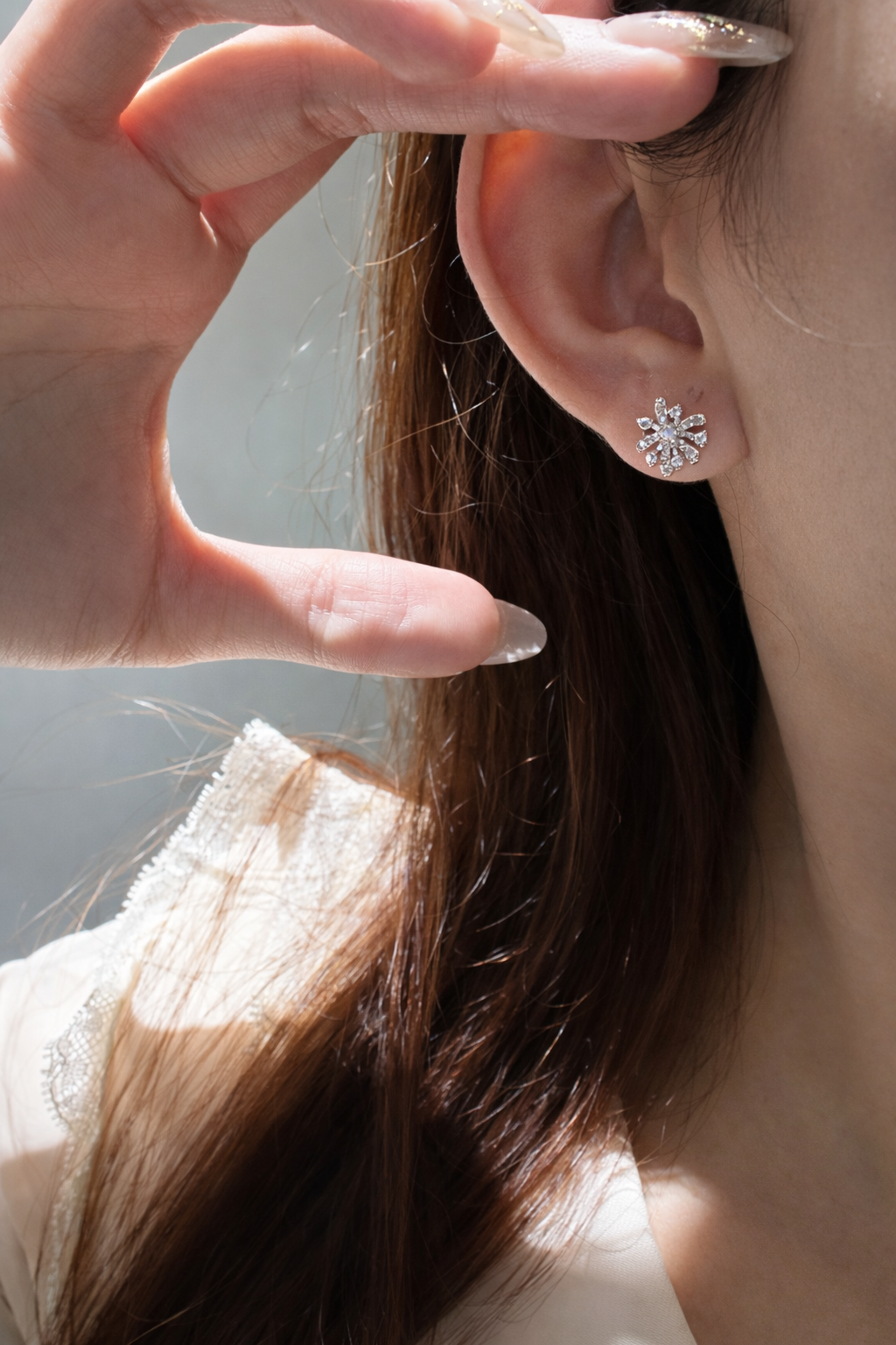 The Radiant Bloom Starburst Stud Earrings are inspired by blossoming petals and celestial light, crafted in a delicate starburst silhouette that sparkles from every angle. Each stud features layered, petal-like rays adorned with fine crystal accents, creating a radiant floral glow that symbolizes renewal, vitality, and inner brilliance.