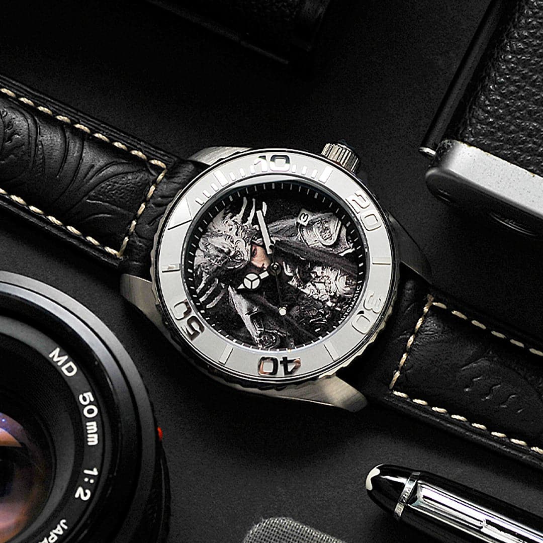 The distinctive design of this watch, inspired by Ma Chao San Guo, makes it a standout accessory that will garner compliments from friends and colleagues alike. The black leather strap ensures both comfort and durability for everyday wear. This watch boasts a sleek look with clean lines that will complement any outfit, making it the perfect addition to your collection. With its high-quality construction, this timepiece is designed to last for years to come.