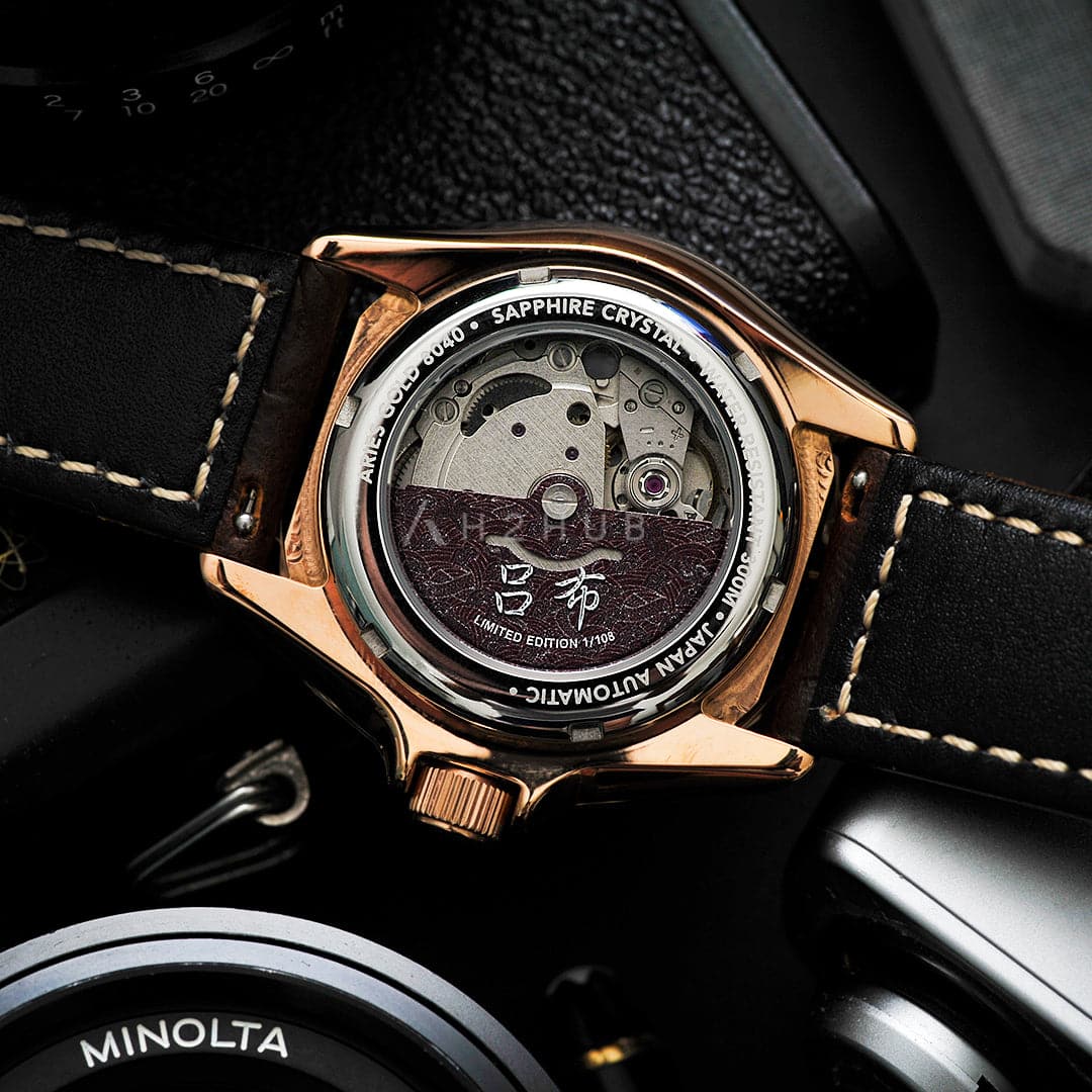 Unleash your inner hero with the Aries Gold San Guo Series. Crafted from warrior-forged steel and draped in royal leather, these timepieces echo the legends of China's Three Kingdoms. Conquer time with precision, defy depths with water resistance, and seize every moment. Unwavering precision echoes Lu Bu's campaigns, 30 ATM whispers of Zhuge Liang's daring. More than a watch, it's a battle cry on your wrist. Choose your hero, write your legend. This watch isn't just an accessory; it's a symbol of strength and style, paying homage to tradition while embracing contemporary fashion. Seize every moment with the Aries Gold Ma Chao San Guo Series, an embodiment of valor and timeless sophistication.