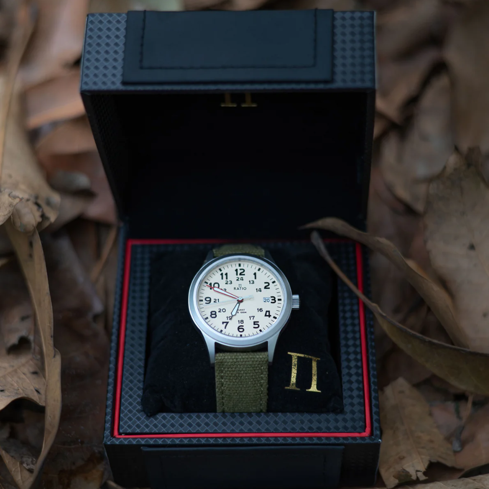 Ratio Quest Men's Field Watch Sapphire Canvas Strap Quartz RTQ019 100M Lewis And Clark Edition