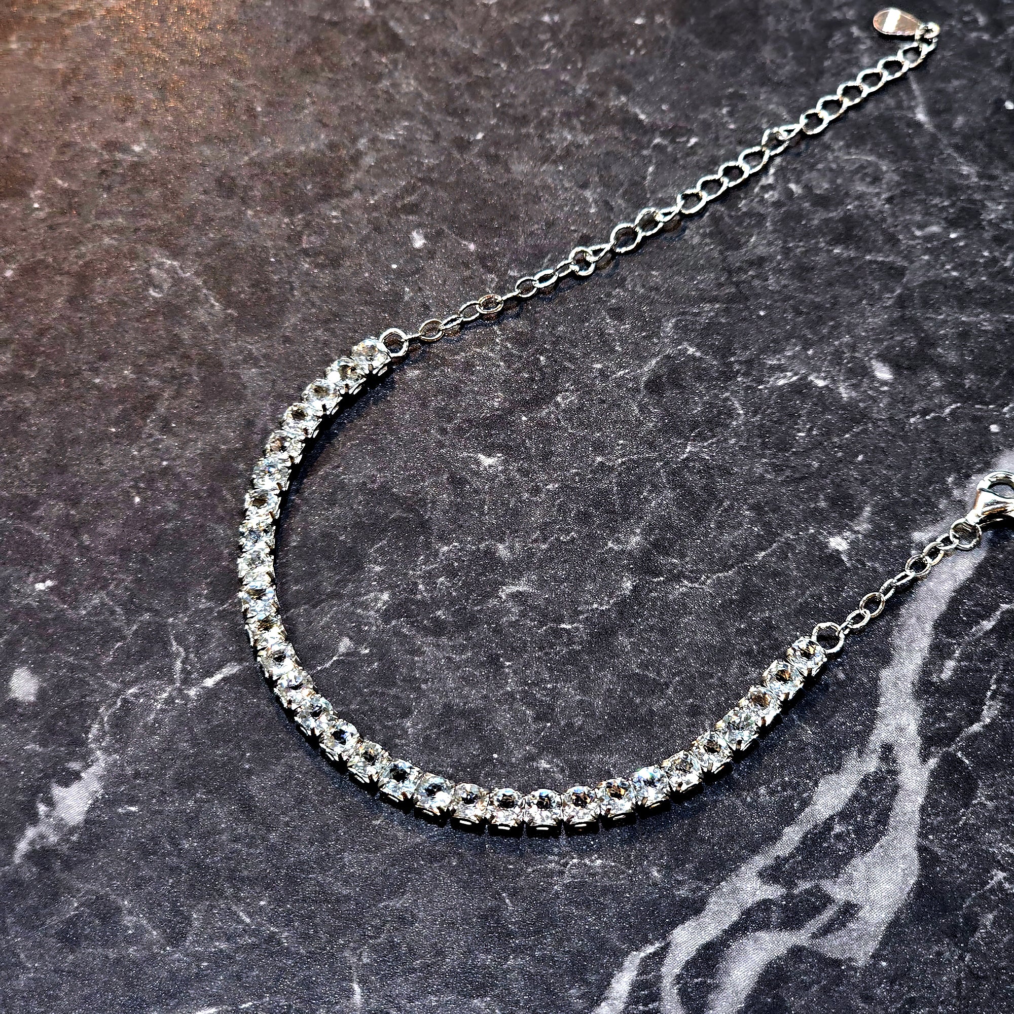Set in high-polish silver, each stone is precisely placed to maximize light reflection — making this piece a true showstopper whether worn alone or stacked with other favorites. Its adjustable chain ensures a comfortable, secure fit for all wrist sizes.