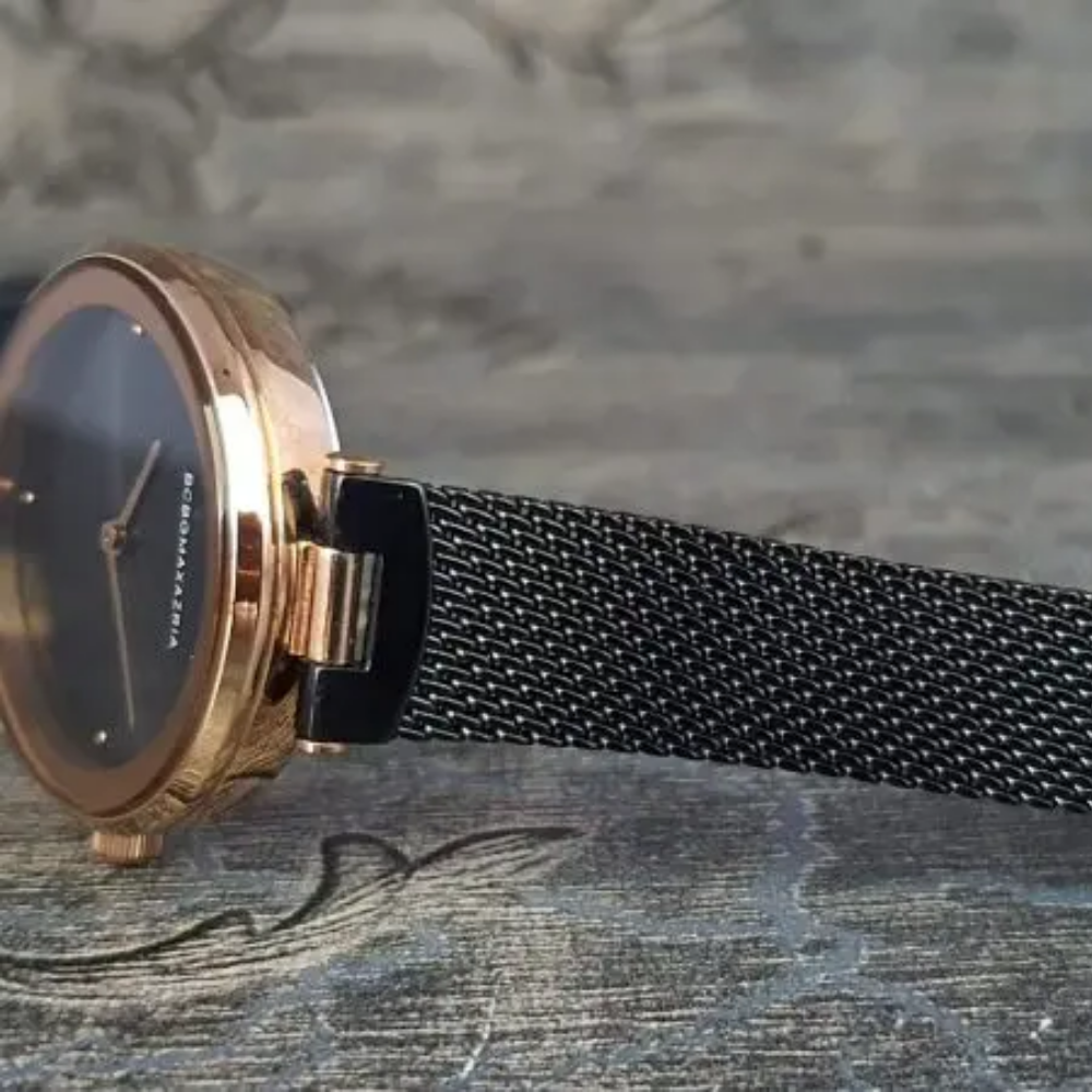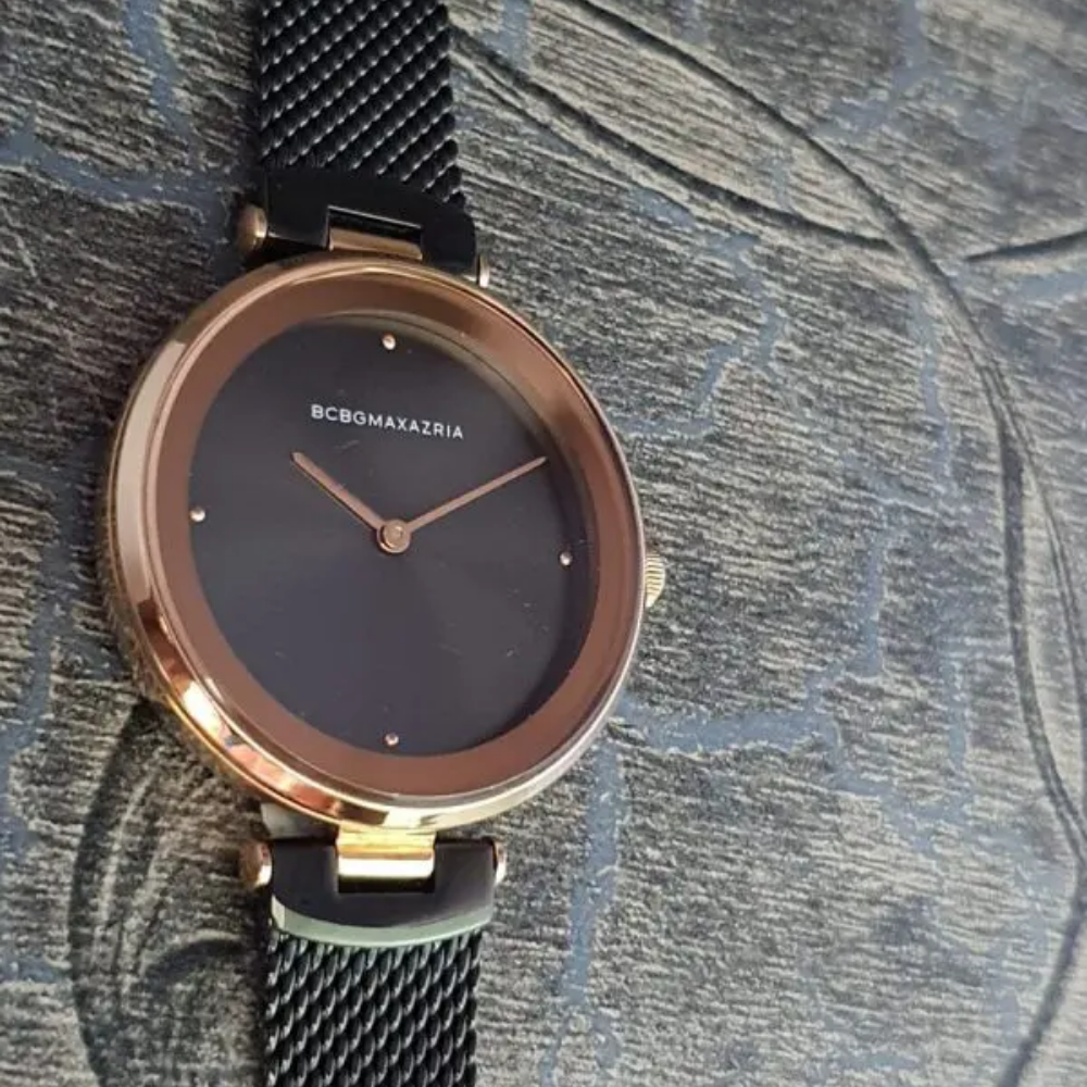 BCBGMAXAZRIA QUARTZ ROSE GOLD STAINLESS STEEL BG50671004 BLACK MESH STRAP WOMEN'S WATCH