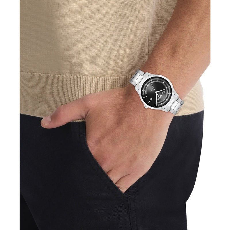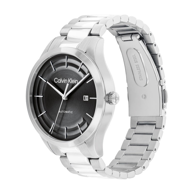 The Calvin Klein Iconic Automatic Silver Stainless Steel Bracelet Analog Watch combines precision and contemporary aesthetics. With a durable stainless steel build, an automatic movement, and a striking black dial, this timepiece balances functionality with style for everyday wear.