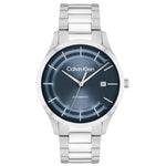 The Calvin Klein Iconic Automatic Silver Stainless Steel Bracelet Analog Watch CK-25300018 combines precision and contemporary aesthetics. With a durable stainless steel build, an automatic movement, and a striking blue dial, this timepiece balances functionality with style for everyday wear.