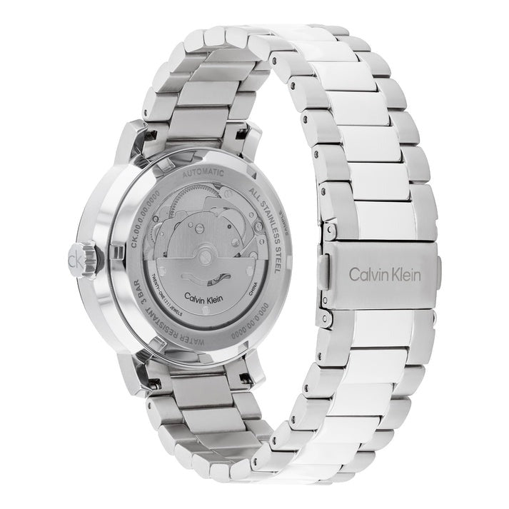 The Calvin Klein Iconic Automatic Silver Stainless Steel Bracelet Analog Watch CK-25300018 combines timeless elegance with contemporary design. Featuring a stainless steel case and bracelet in a silver finish, complemented by a rich brown dial, this watch delivers both functionality and style.