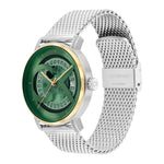The Calvin Klein Iconic Auto Green Dial Mesh Steel Watch 25300005 is a sophisticated blend of elegance and innovation. Featuring a striking green dial complemented by gold-tone hands, this timepiece is powered by Seiko Instruments' NH35 automatic movement with a 41-hour power reserve. Its 40 mm stainless steel case and silver mesh bracelet ensure timeless style and reliable durability. Ideal for those seeking a unique yet classic look, this watch is perfect for any occasion.