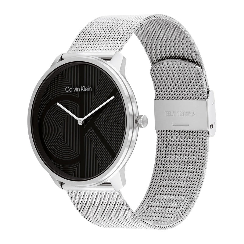 The Calvin Klein Iconic Silver Mesh Bracelet Watch 25300012 combines modern simplicity with timeless appeal. Featuring a sleek black dial and a polished silver-tone mesh bracelet, this unisex timepiece is designed for versatile styling. With reliable quartz movement and water resistance up to 3 ATM, it delivers both functionality and elegance.