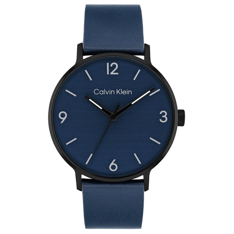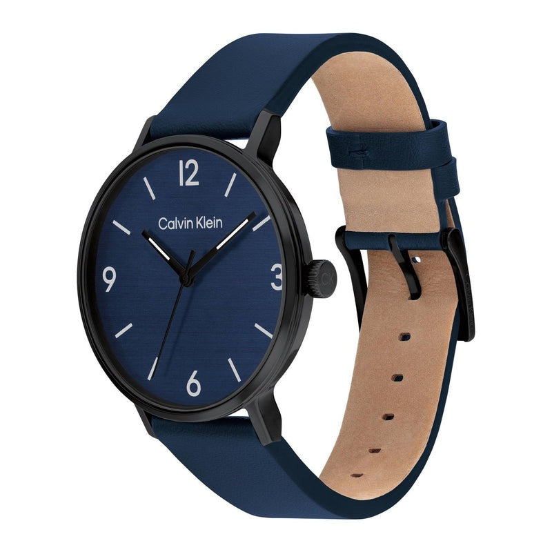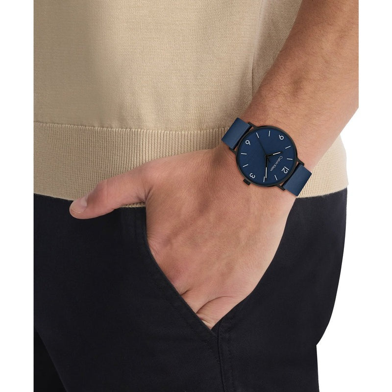 The Calvin Klein Modern Blue Leather Men's Watch (Model CK-25200436) features a sleek blue leather strap and a striking blue dial. The quartz movement ensures accurate timekeeping, while the stainless steel case adds durability.