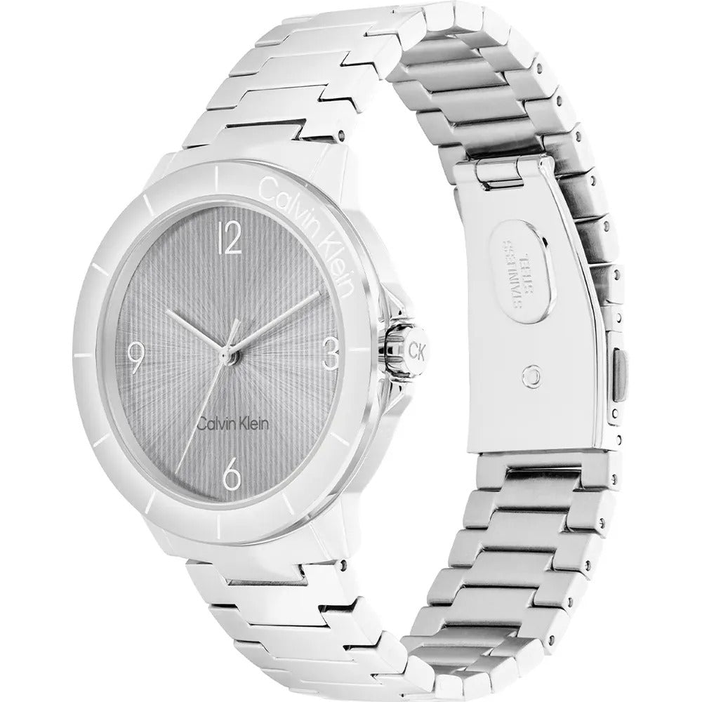 The Calvin Klein Vivacious Silver Steel Watch offers a timeless design for modern women. With its sleek silver-tone finish and elegant grey dial, this watch seamlessly blends sophistication with everyday versatility.