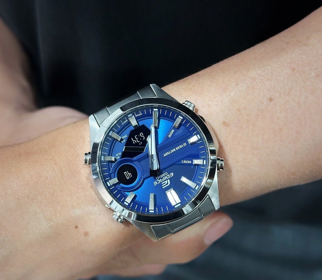 Free yourself to focus on life. Get the EFV-C120 analog-digital combination timepiece with a 10-year battery you won’t have to worry about for ages.