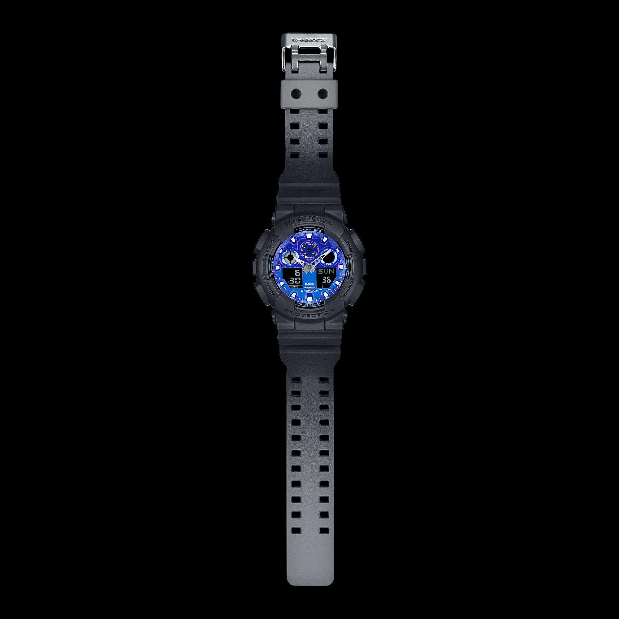 Casio G-SHOCK Analog-Digital Fiery Blue Dial Gray-on-Black Strap Watch GA-100FL-1ADR