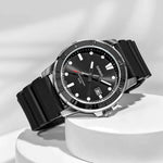 Venture into the realm where metal and urethane meet in a sporty analog design.