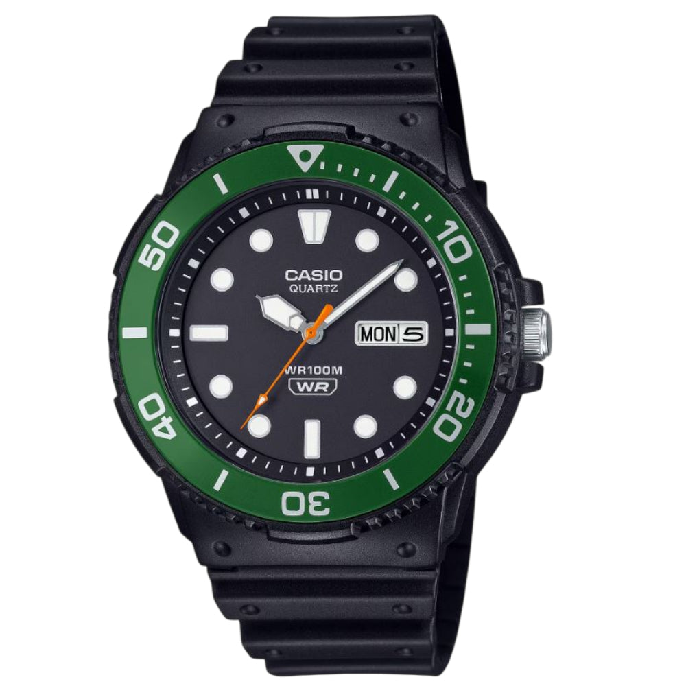 Introducing a marine-inspired analog watch with a rotating bezel.