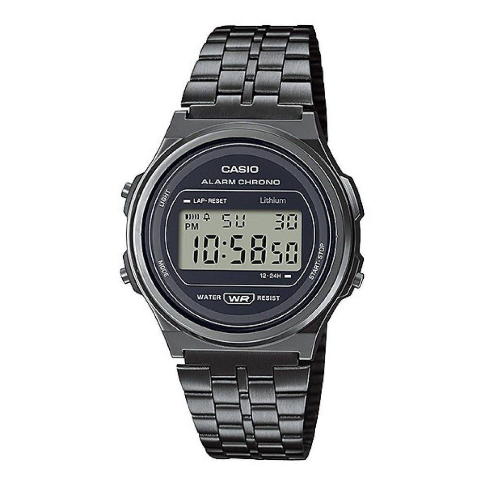 With a vintage retro look in your choice of one tone color , this mid-sized design aims to please and never goes out of style. Use the slide clasp to easily adjust the band length for the perfect fit. Loaded with functionality, these water-resistant watches are equipped with a convenient calendar, stopwatch, and LED light for an easy read in any lighting. Choose from the standard link band in three different colors or the extra-fashionable mesh band in gold.