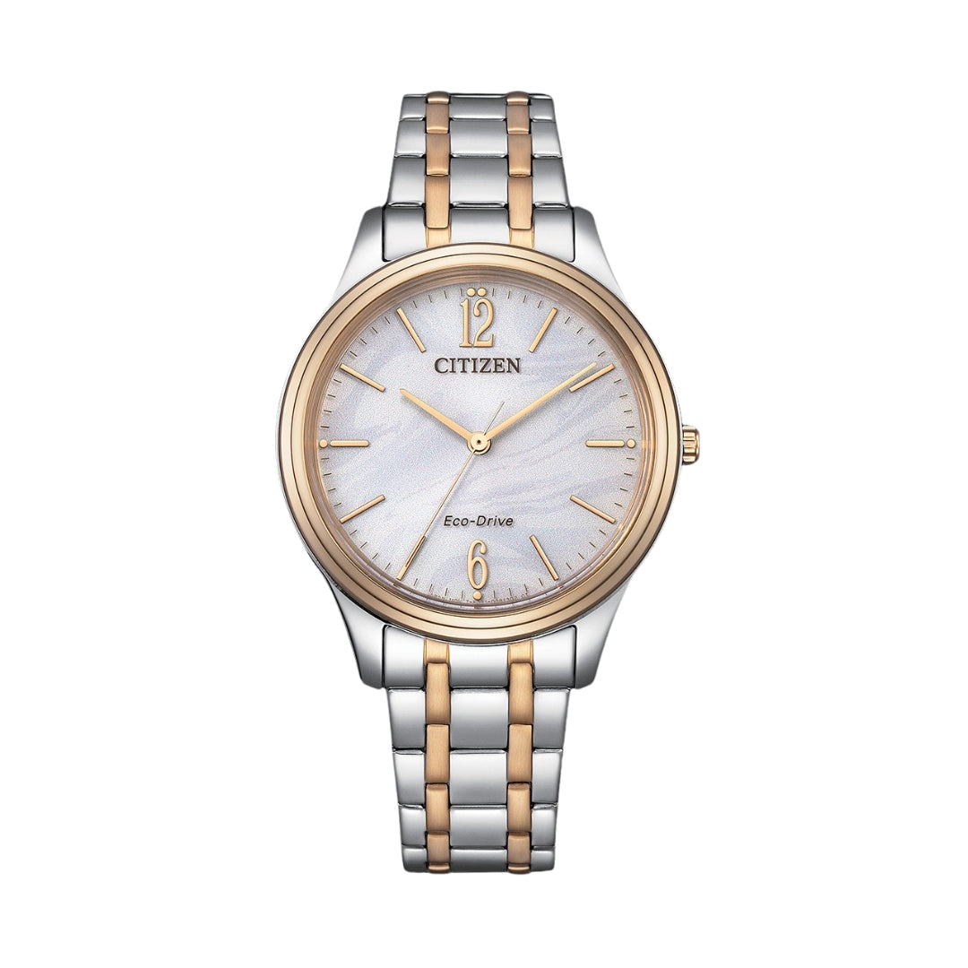 CITIZEN LADY ELEGANCE WHITE PEARL TWO-TONE ROSE GOLD STEEL EM0416-78A