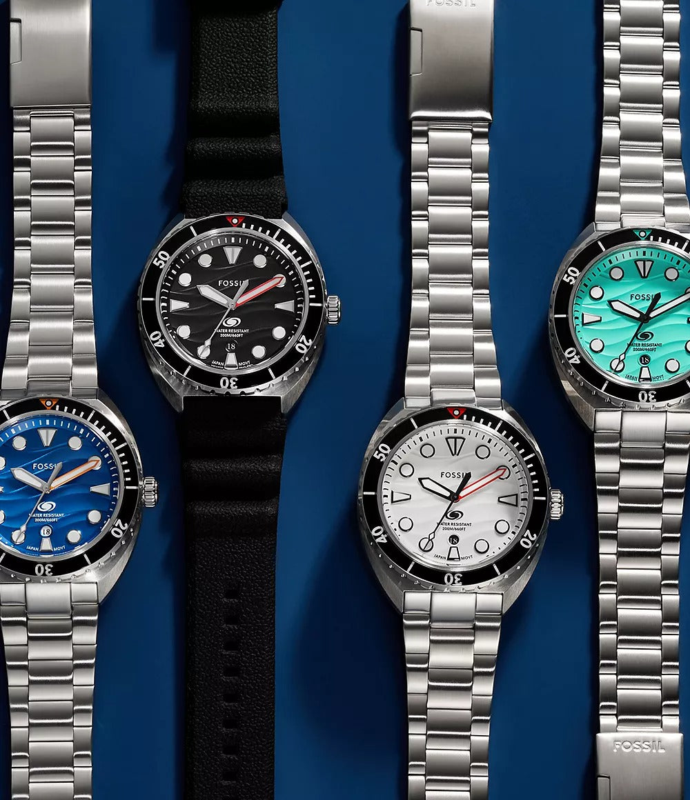 The Fossil Breaker Blue Dial watch combines bold aesthetics and functionality, designed for the adventurous at heart. With its navy textured dial and 20 ATM water resistance, this watch is perfect for those seeking both style and performance in the water. The modern dive-style design channels the excitement of open water adventures, while the stainless steel case and bracelet ensure durability.
