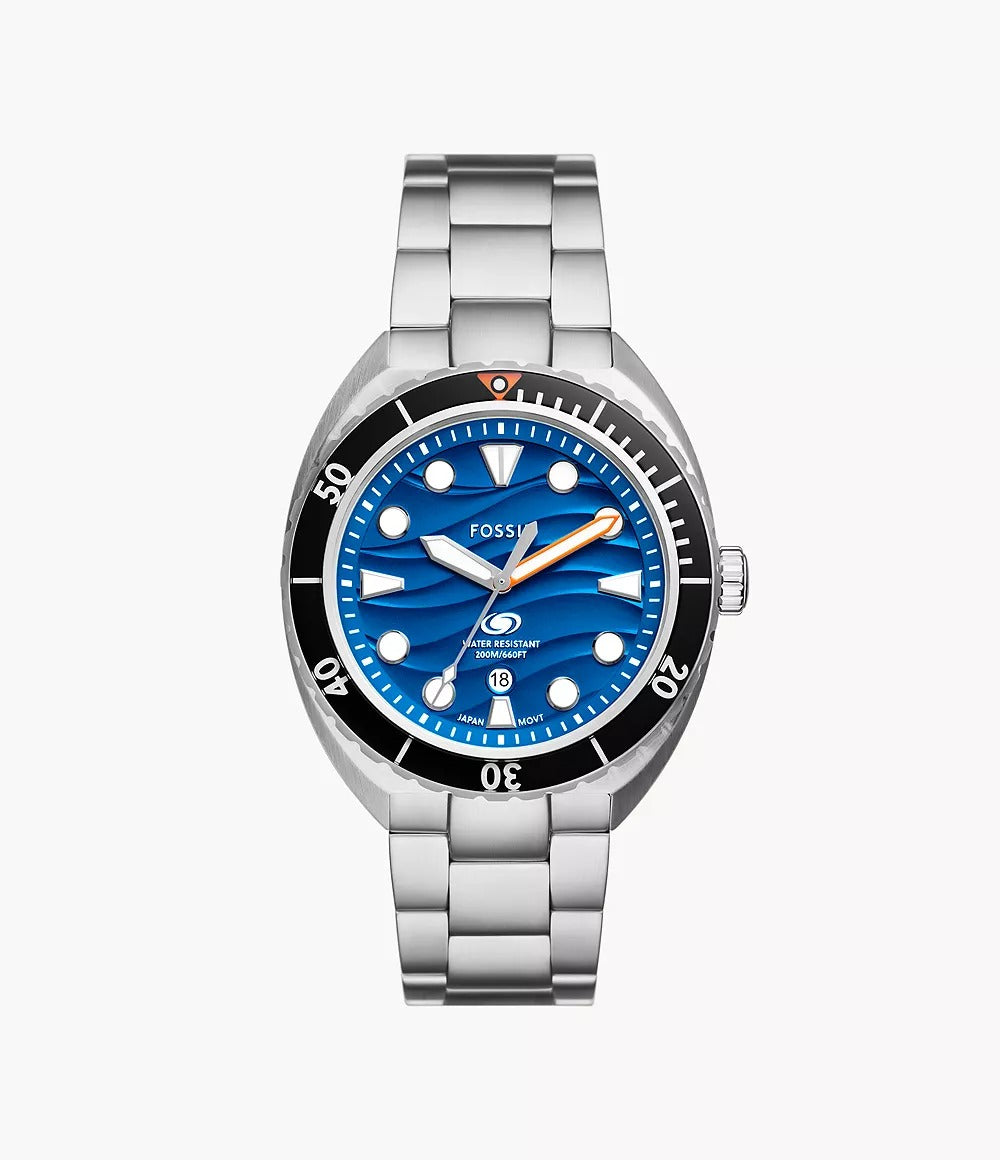 FOSSIL BREAKER BLUE DIAL THREE-HAND DATE STAINLESS STEEL WATCH FS6064 ⌚🌊