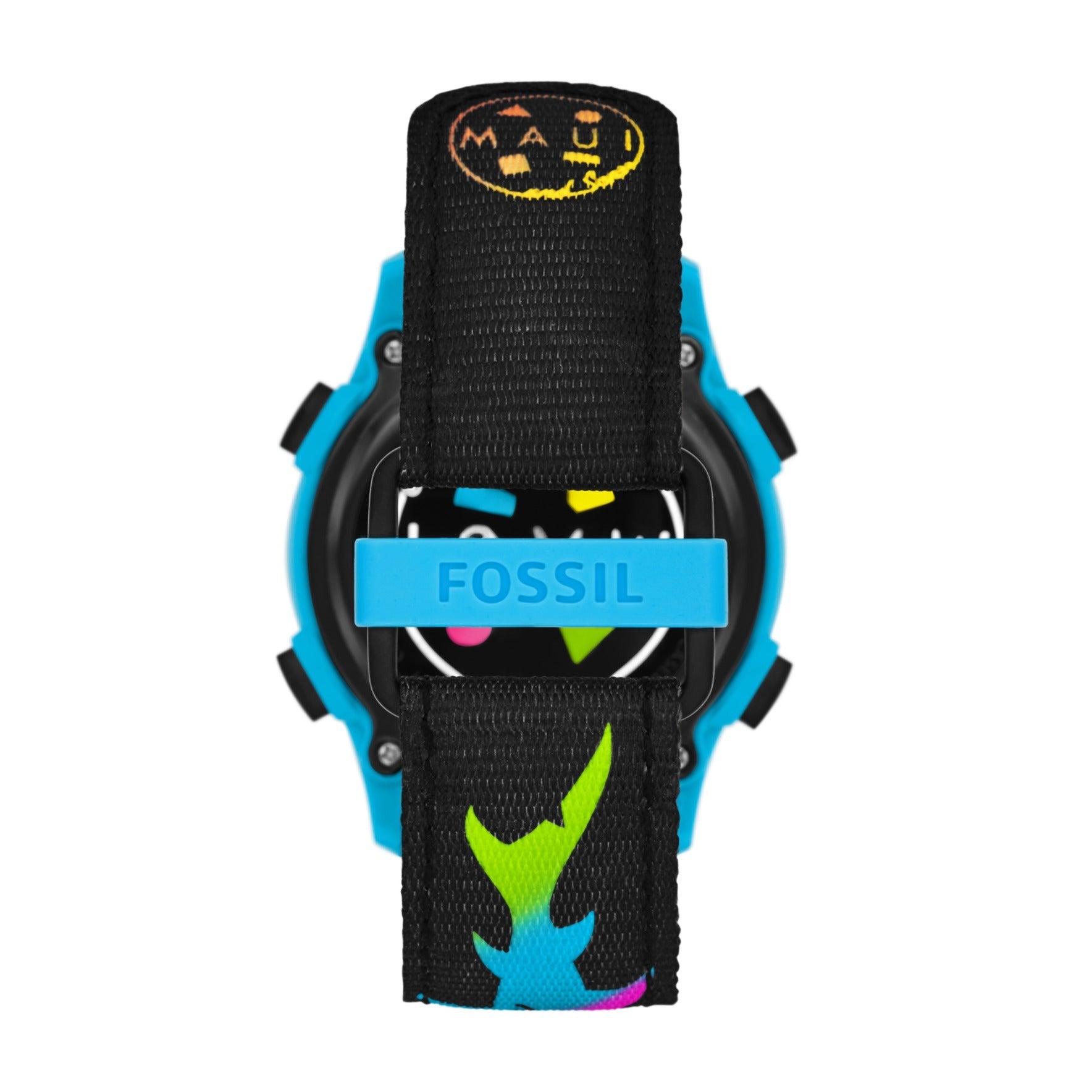 The Maui and Sons x Fossil Limited Edition Solar-Powered Analog-Digital Black rPET Watch combines sustainability and style. Crafted with Pro-Planet textile, this 42mm solar-powered watch features a sleek black dial, a digital movement, and a Velcro strap for easy wear. Perfect for eco-conscious adventurers, it’s water-resistant up to 5 ATM and designed with interchangeable strap compatibility.