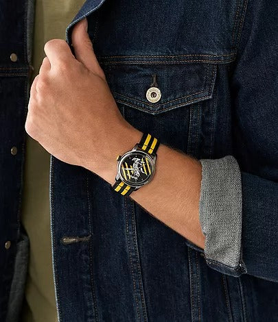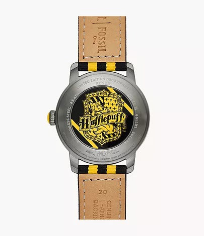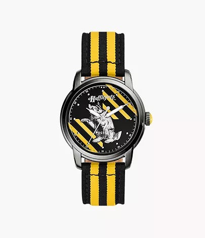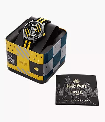 Celebrate your love for the Wizarding World with the Limited Edition Harry Potter™ Three-Hand Hufflepuff™ Nylon Watch. This 40mm watch features a multicolor glossy dial with Hufflepuff™ house details, three-hand quartz movement, and a durable yellow and black nylon strap. Perfect for fans, it combines magical charm with everyday practicality.