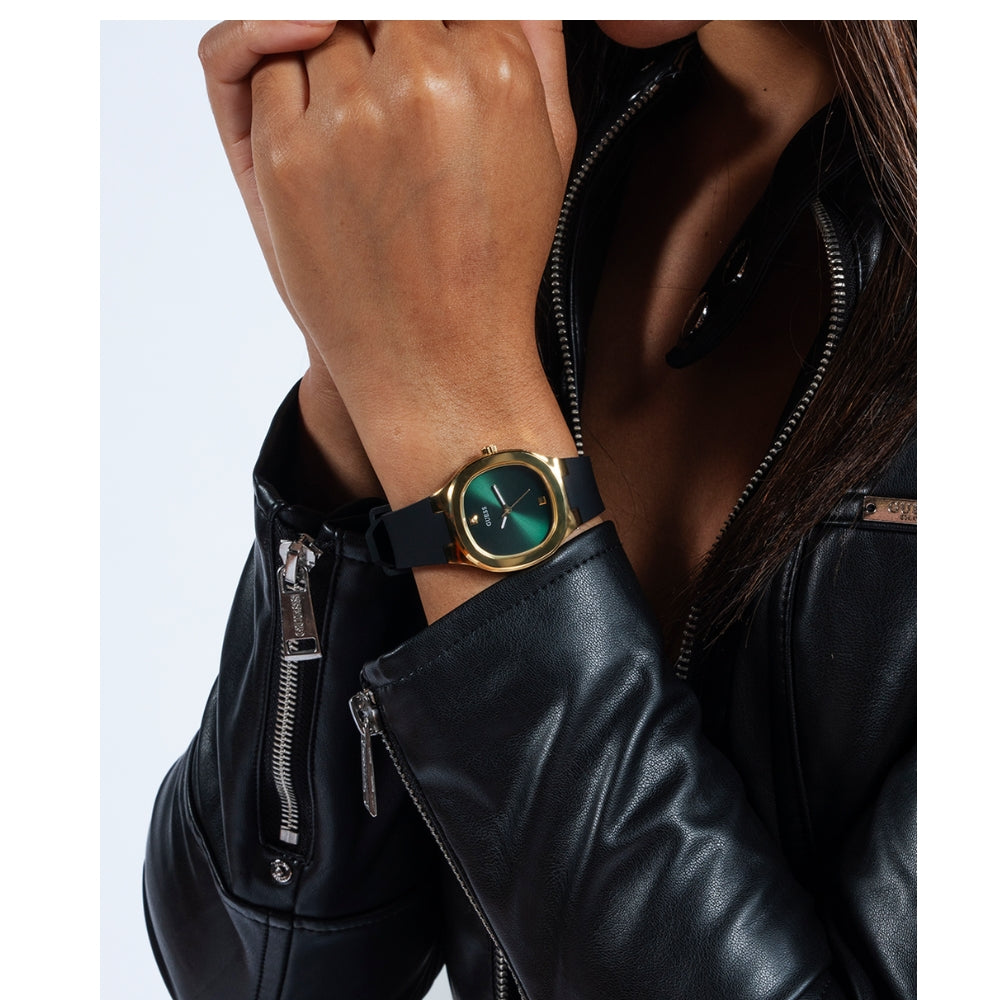 Guess Eve GW0658L1 Green & Gold Dial Black Watch ⌚✨