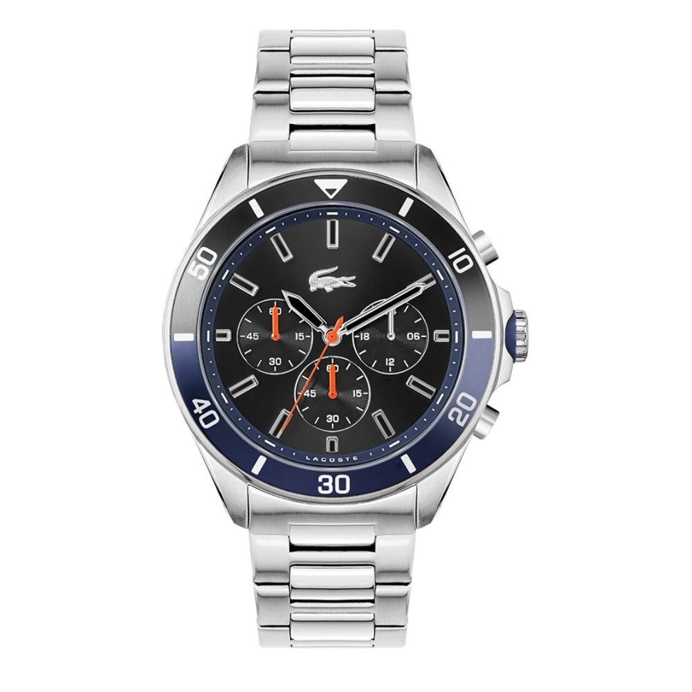 A sophisticated and sporty chronograph watch, the Lacoste 2011155 from the Tiebreaker collection is designed for men who appreciate precision and style. With a stainless steel case and bracelet, a bold black dial, and durable construction, this timepiece is perfect for any occasion.