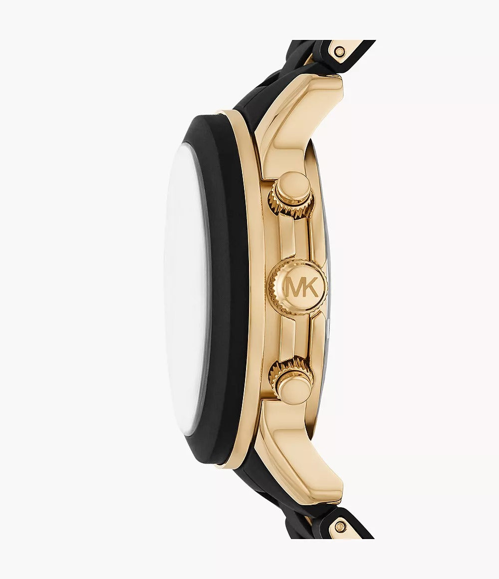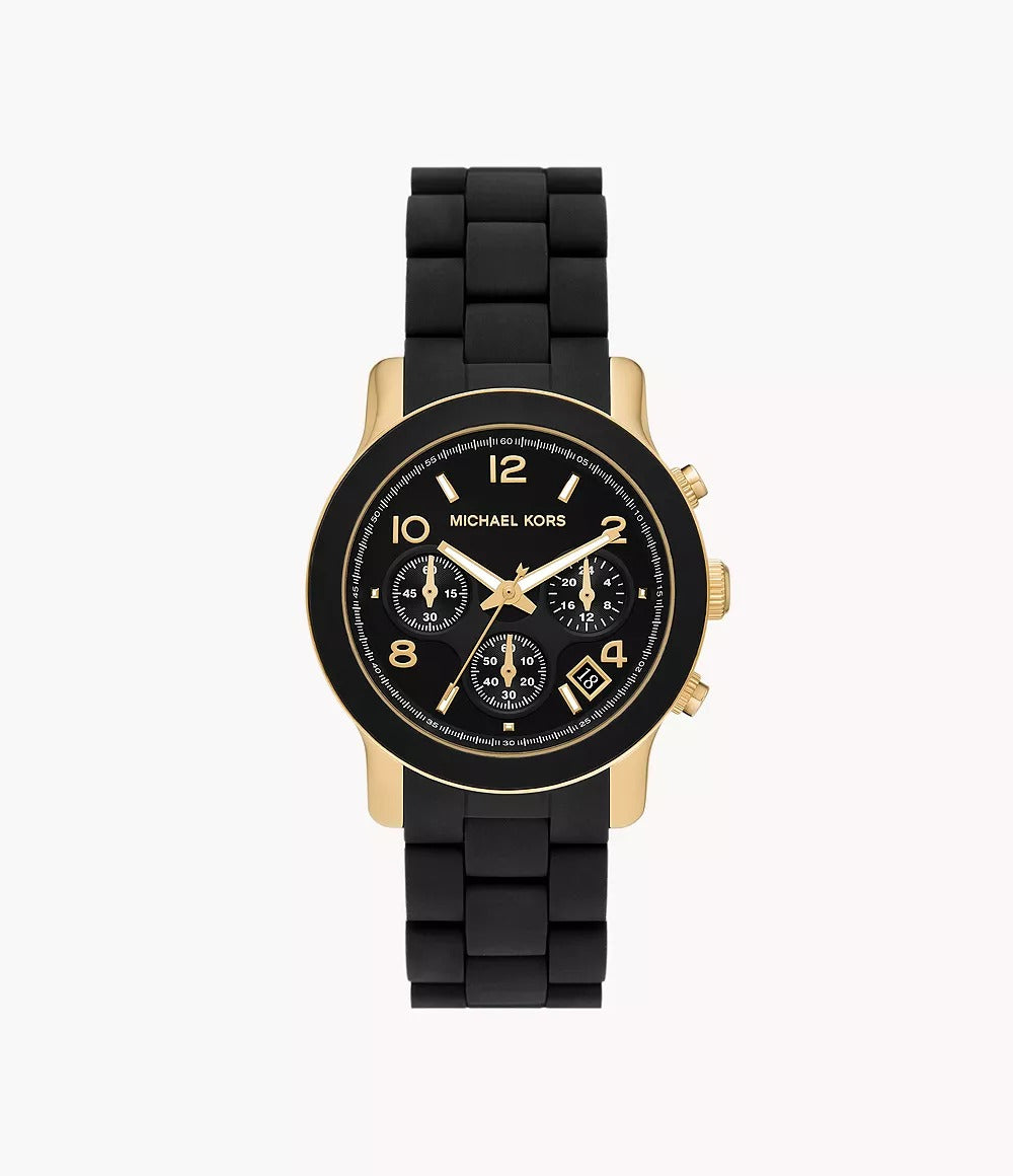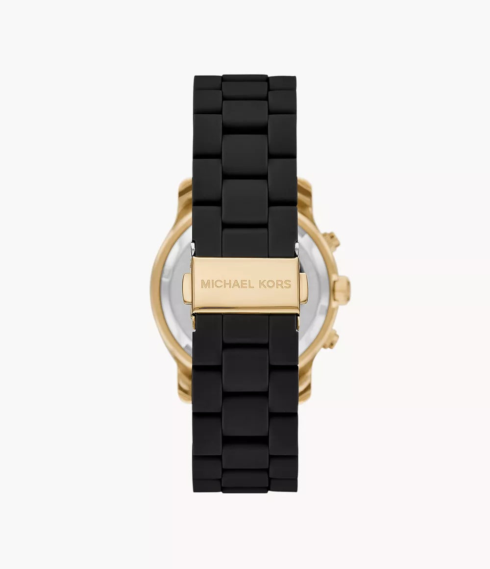 ● Model: MK7385 Runway Chronograph Steel & Black Silicone Watch