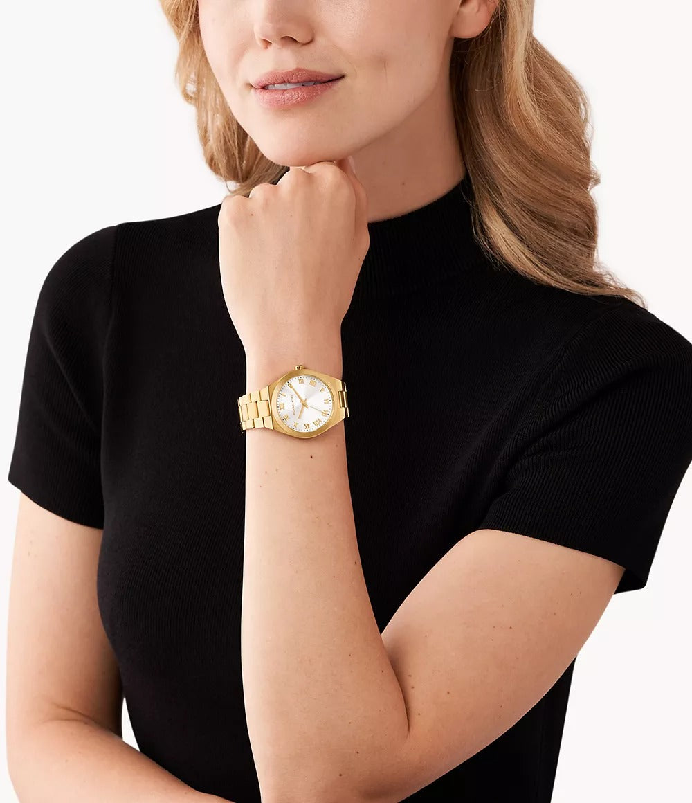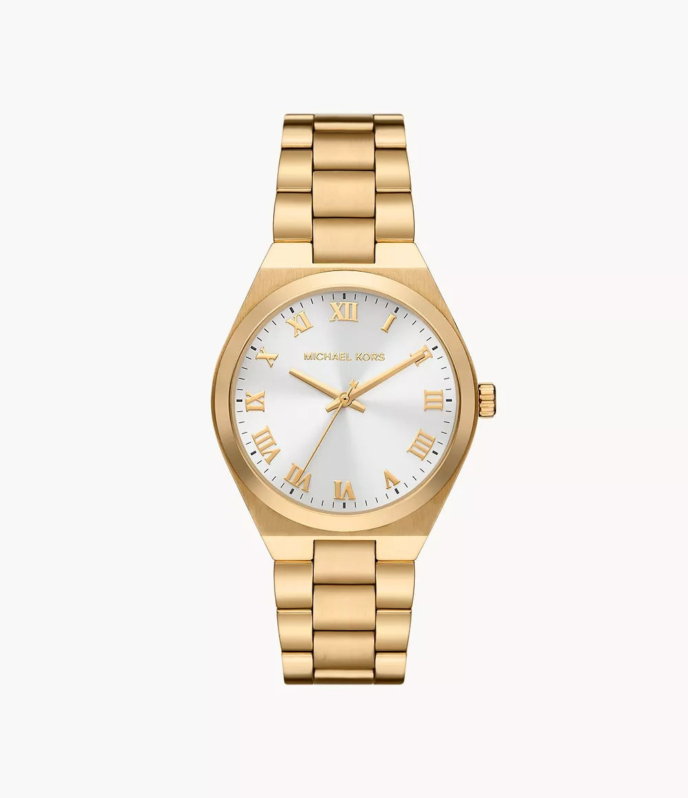 ● Model: MK7391 Lennox Three-Hand Gold Steel Watch