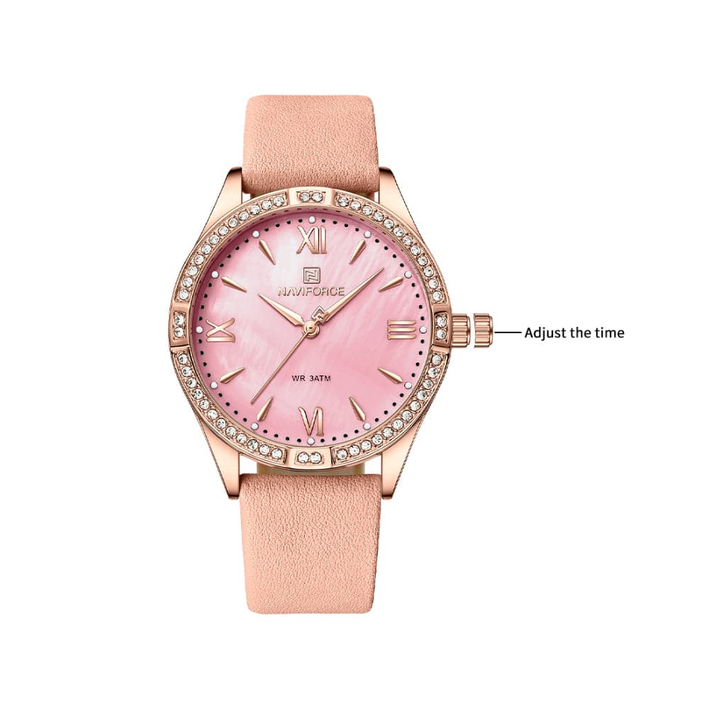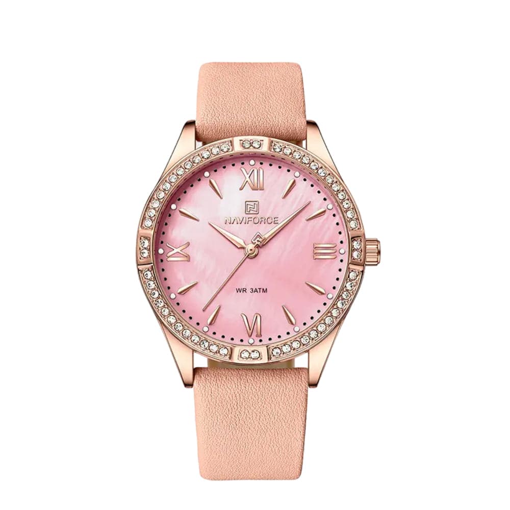 Naviforce Pink Dial Leather Strap Women Watch NF5038 RG/R