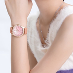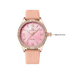 Discover the allure of elegance with the NF5038 Japanese Metal Quartz Watch. Its sparkling crystal-diamond-set bezel, captivating mother-of-pearl dial, and vibrant leather strap combine for a timeless piece that speaks of romance and sophistication. Powered by Japanese metal quartz movement, this watch blends beauty and precision effortlessly.