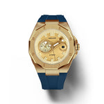 • Material: 316L stainless steel case with gold PVD (Physical Vapor Deposition) coating, meticulously finished with satin-brushed and polished surfaces